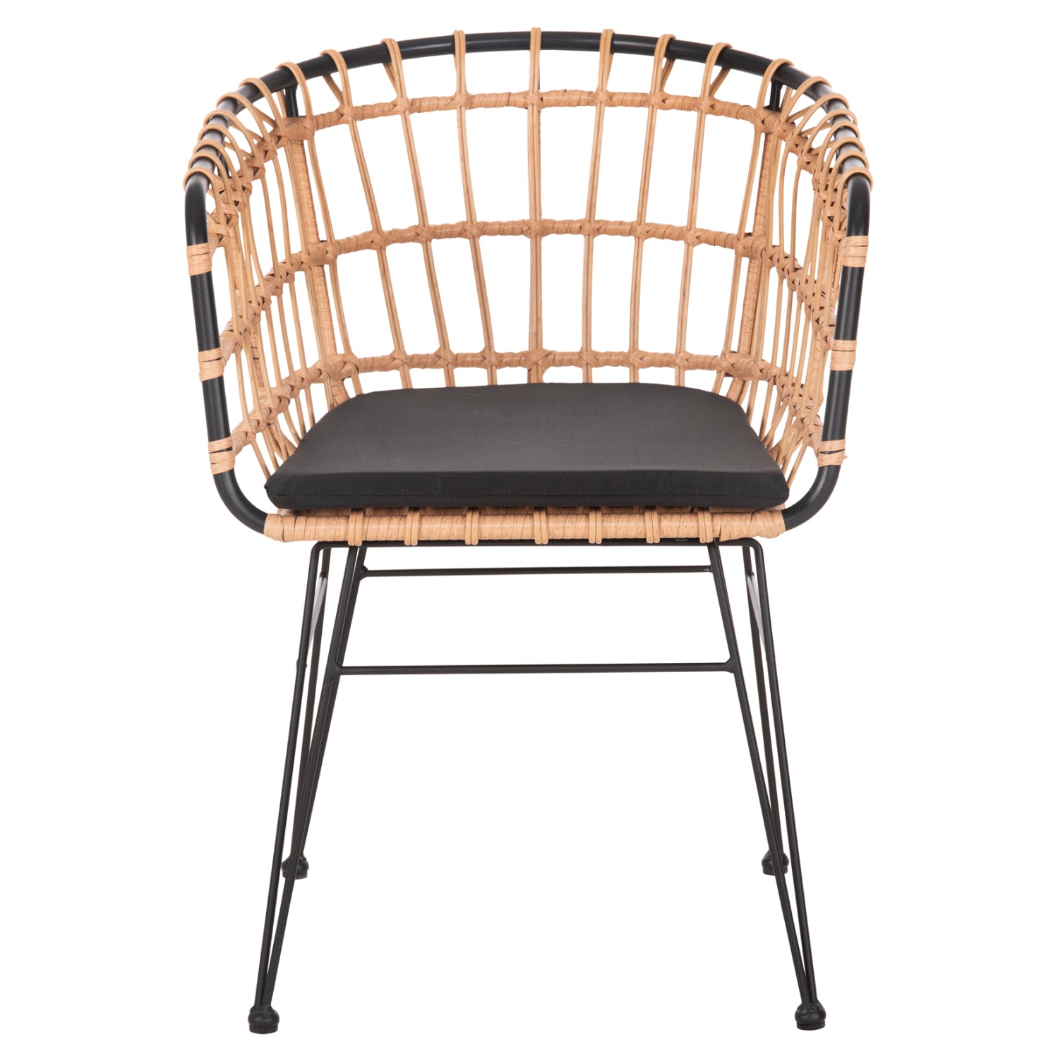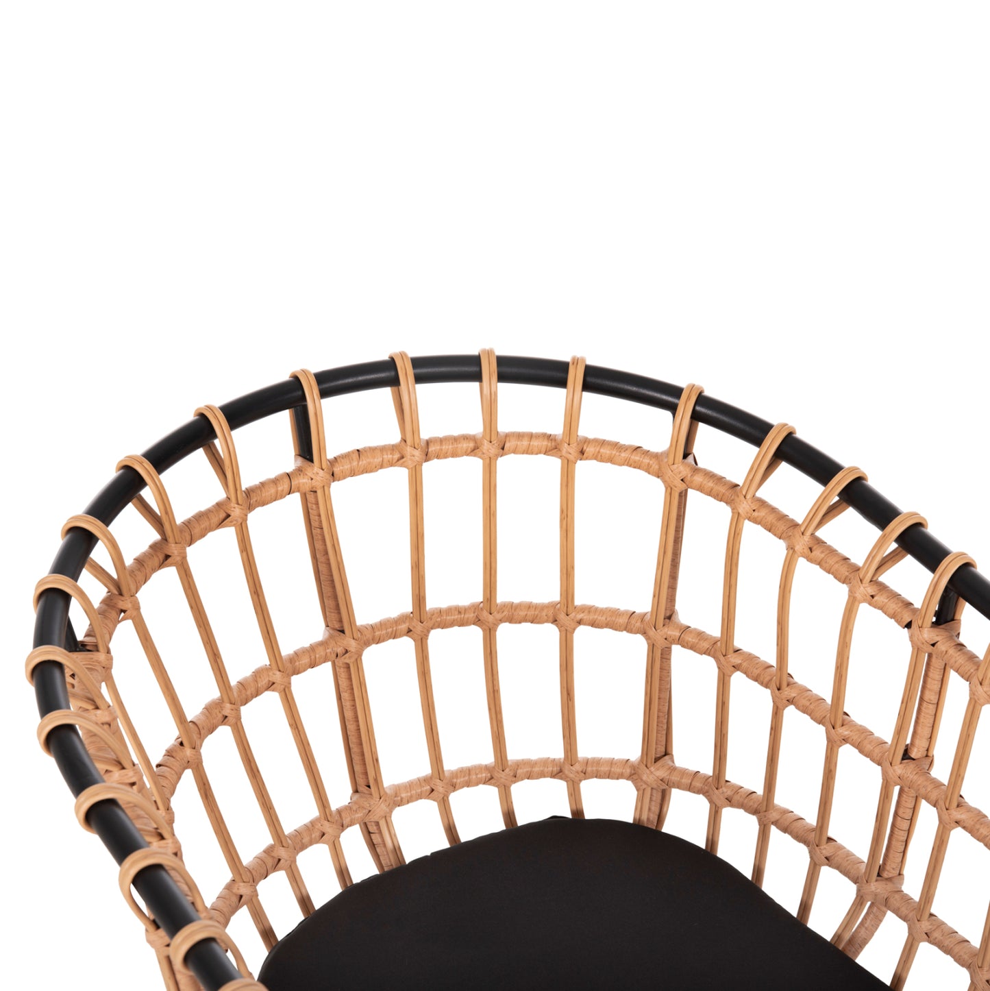 Το κάθισμα και τα μπράτσα της πολυθρόνας είναι από συνθετικό Rattan σε πλέξη wicker. Στα περισσότερα έπιπλα κήπου και γενικά σε έπιπλα για εξωτερικούς χώρους χρησιμοποιείται συνθετικό Rattan από PVC, δηλαδή τεχνητές ίνες υψηλής ποιότητας. Αυτό δίνει στην κατασκευή εξαιρετική αντοχή και ανθεκτικότητα σε ακραίες συνθήκες ζέστης ή κρύου.