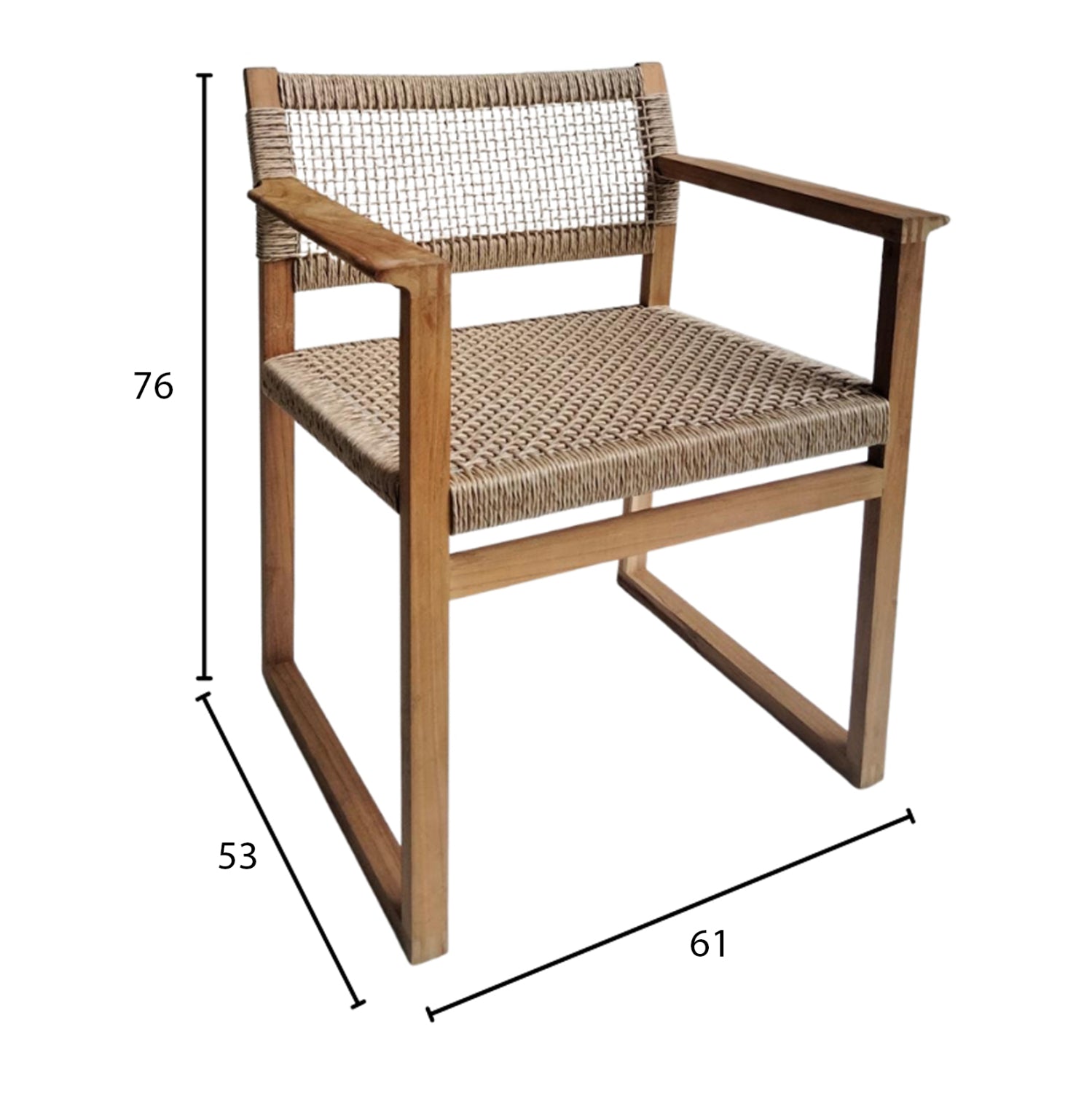 Η πολυθρόνα NARLEY είναι μια πολυθρόνα απαράμιλλης ομορφιάς. Ο κλασσικός σκελετός της με τις ορθές γωνίες είναι από ποιοτικό ξύλο, ενώ τόσο η μεσαίου ύψους πλάτη όσο και το φαρδύ κάθισμα αποτελούνται από αριστοτεχνικά πλεγμένο συνθετικό σχοινί άριστης ποιότητας σε φυσικό χρώμα. Το ξύλο έχει, επίσης, φυσικό χρώμα που μπορεί άνετα να συνδυαστεί με διάφορα διακοσμητικά μοτίβα. Μια πολυθρόνα που με ένα ταιριαστό τραπέζι μπορεί να απογειώσει κάθε χώρο που θα τοποθετηθεί.