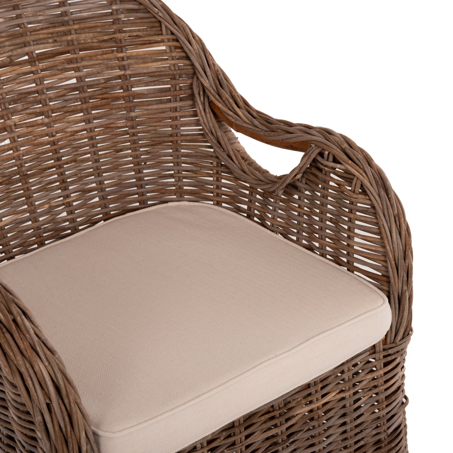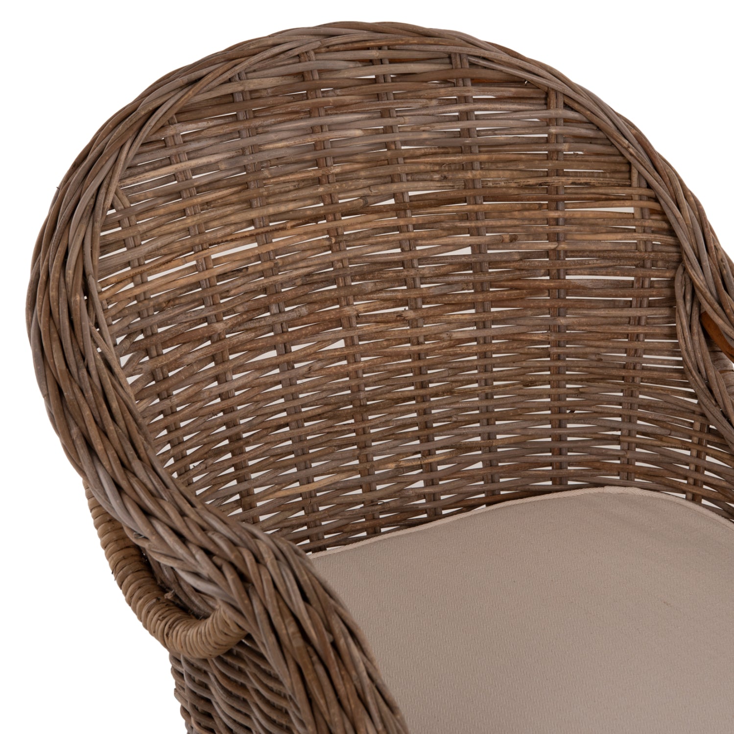 Ολόκληρη η πολυθρόνα είναι φτιαγμένη από rattan. Το Rattan είναι το καλύτερο και το πιο ευρέως χρησιμοποιούμενο φυσικό υλικό για πλεκτές κατασκευές, όπως wicker κτλ. Μάλιστα, το rattan που καλλιεργείται στην Ινδονησία είναι το ποιοτικότερο και ανθεκτικότερο υλικό από παρόμοια που καλλιεργούνται σε άλλες περιοχές.