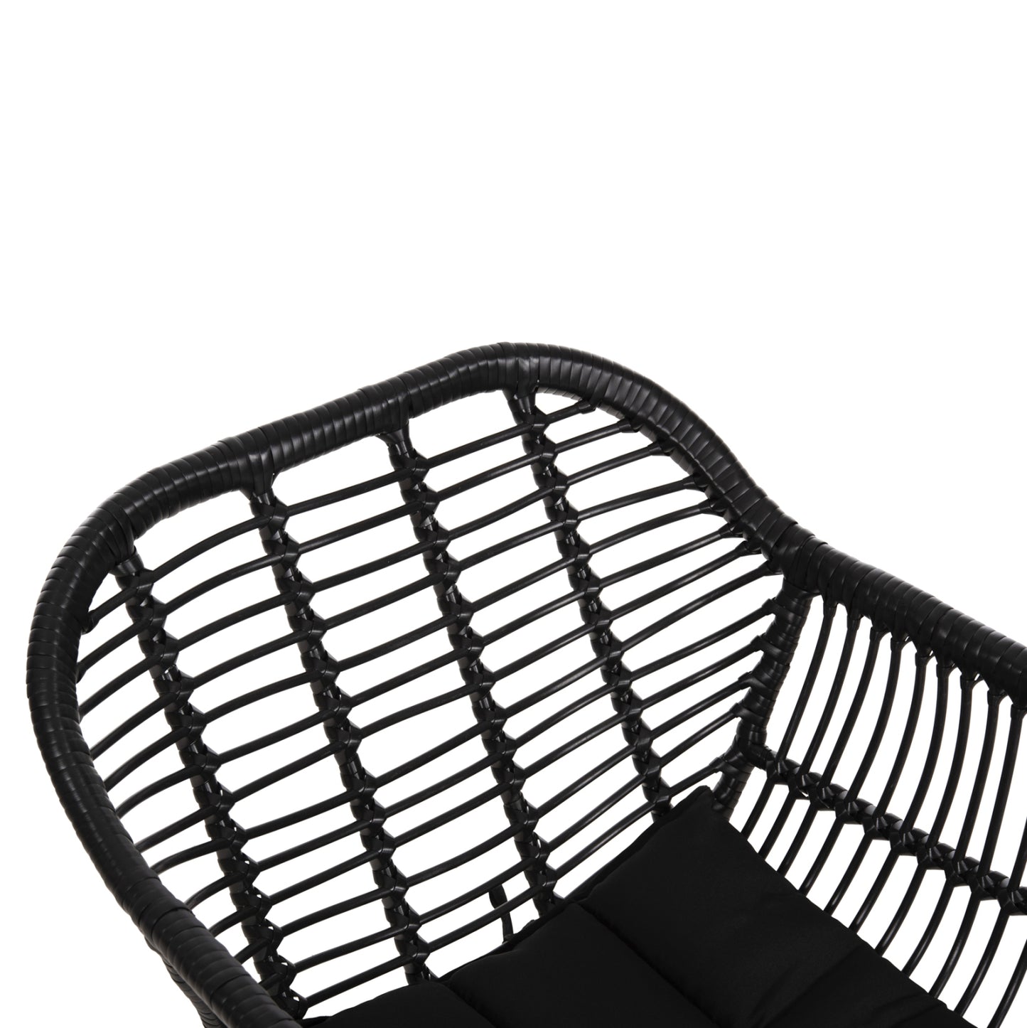 Το κάθισμα και τα μπράτσα της πολυθρόνας είναι από συνθετικό Rattan σε πλέξη wicker. Στα περισσότερα έπιπλα κήπου και γενικά σε έπιπλα για εξωτερικούς χώρους χρησιμοποιείται συνθετικό Rattan από PVC, δηλαδή τεχνητές ίνες υψηλής ποιότητας. Αυτό δίνει στην κατασκευή εξαιρετική αντοχή και ανθεκτικότητα σε ακραίες συνθήκες ζέστης ή κρύου.