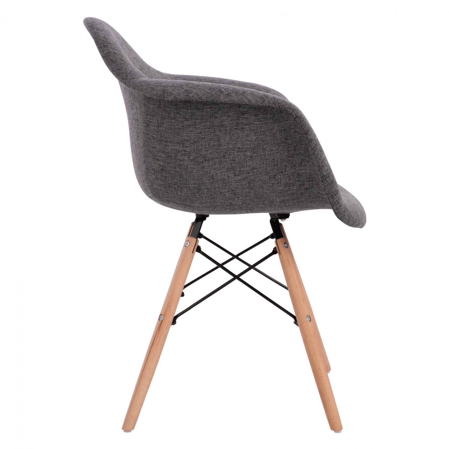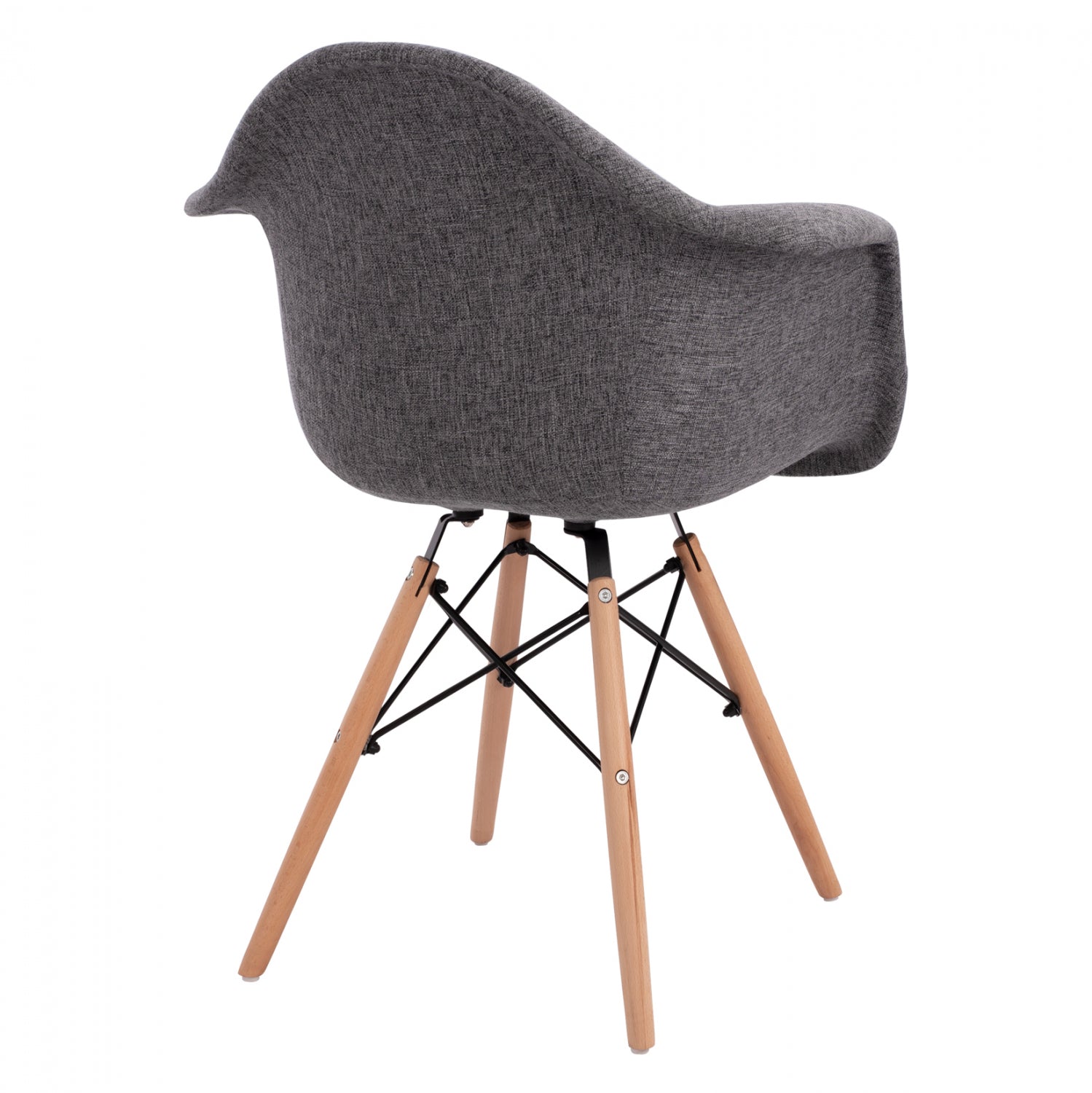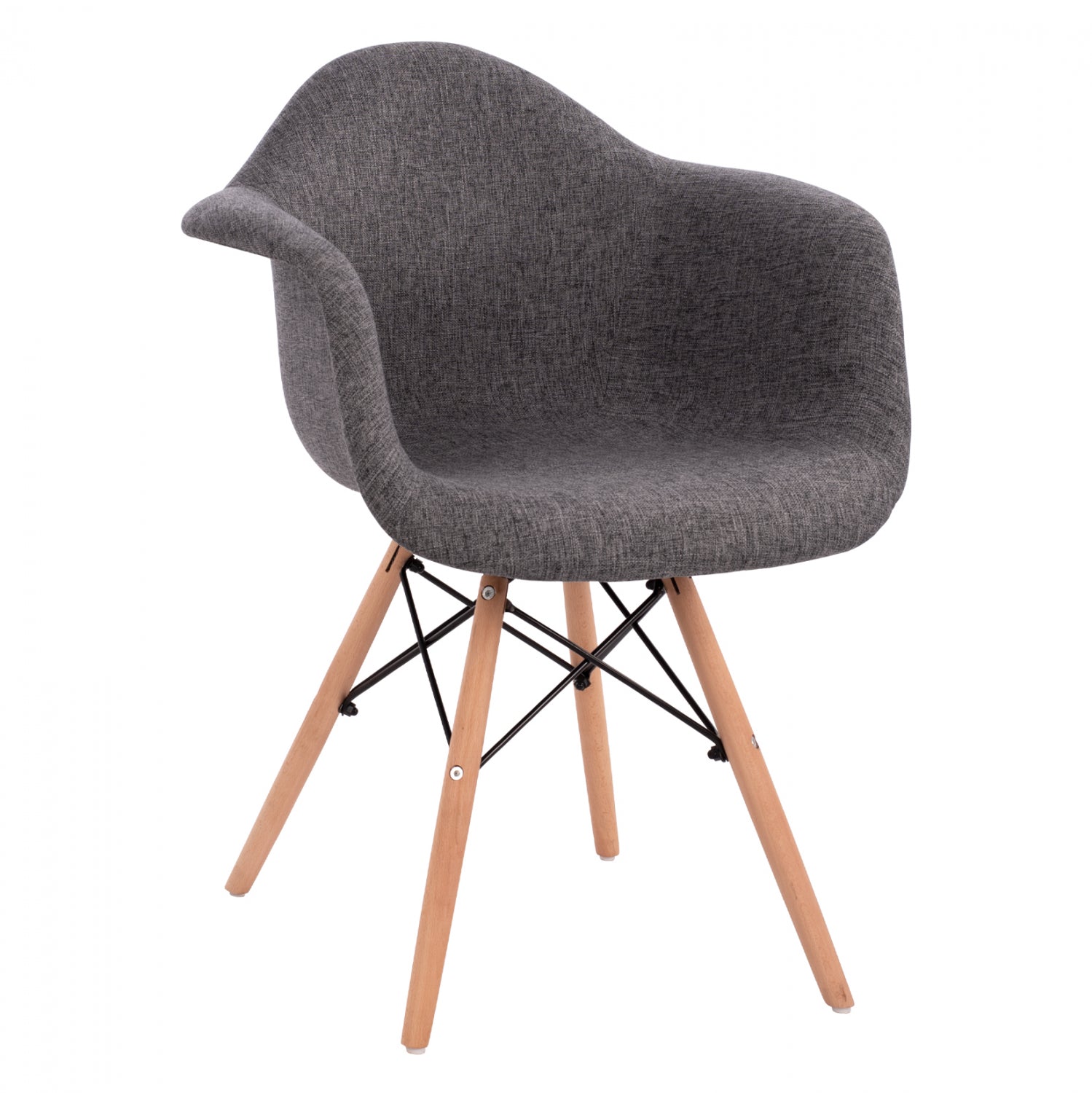 Μοντέρνα πολυθρόνα με γκρι ύφασμα και φυσικά πόδια οξιάς. Ταιριάζει με όλα σχεδόν τα στιλ και είναι μια καρέκλα σταθμός στην ιστορία του design.