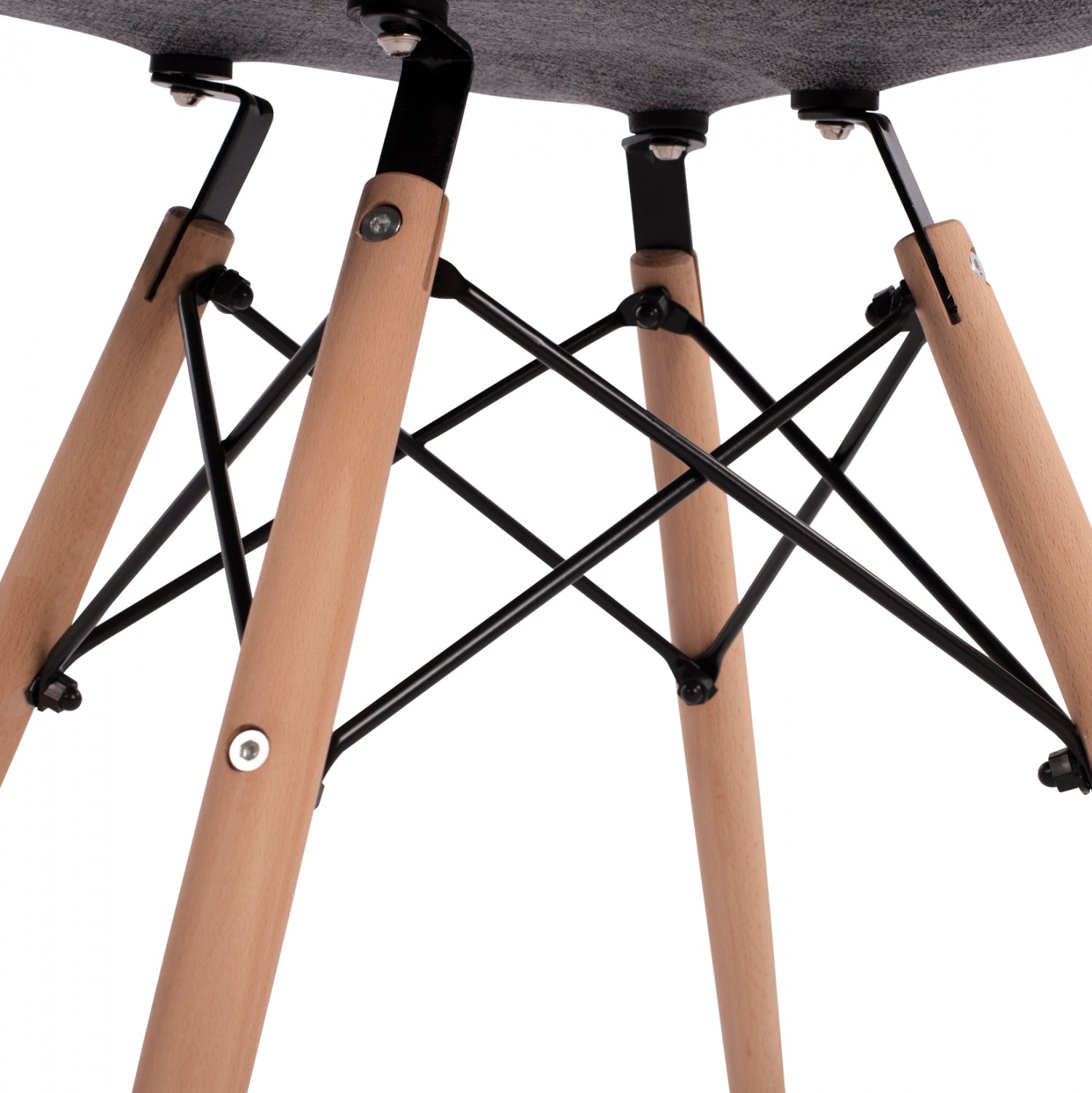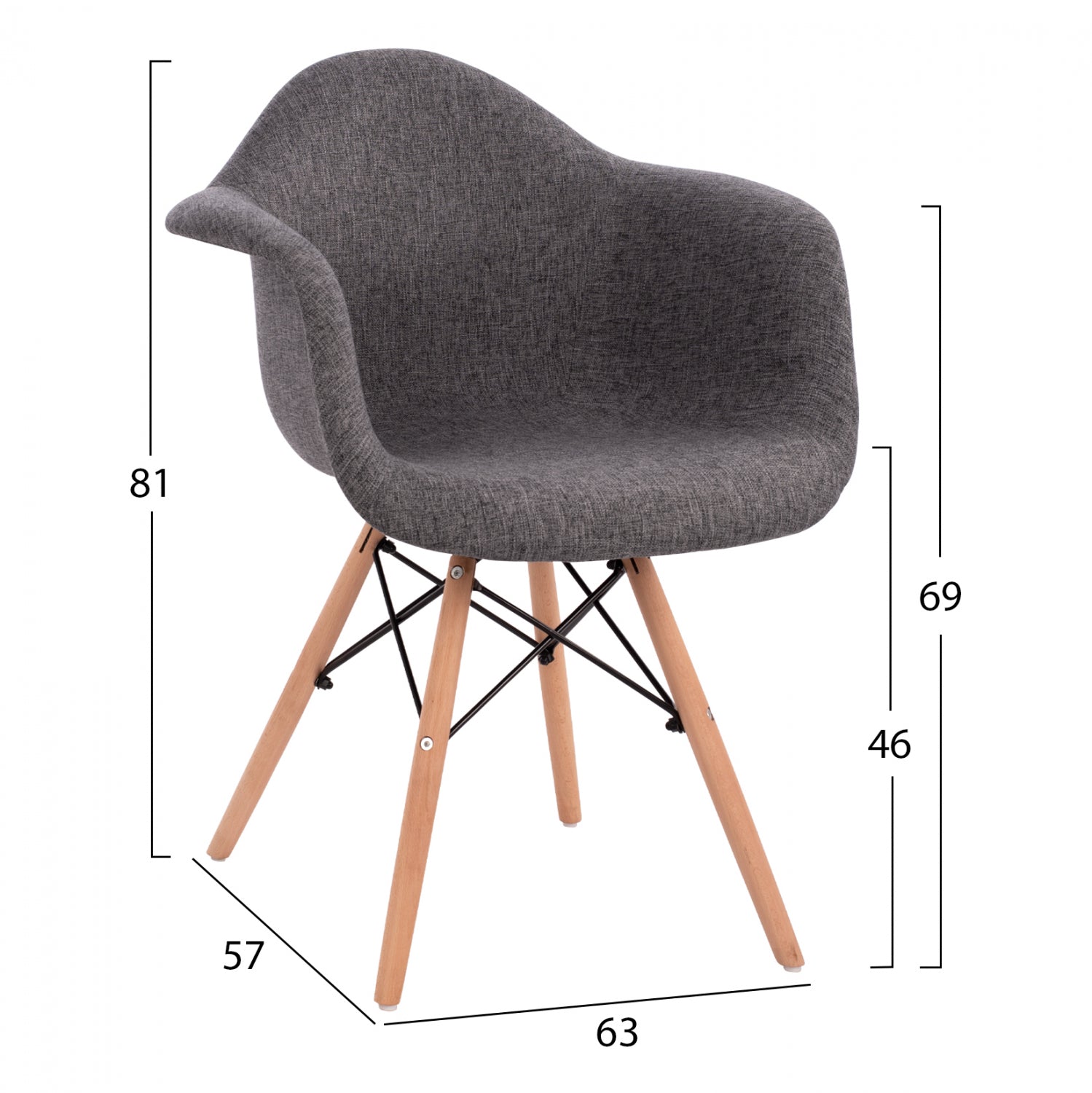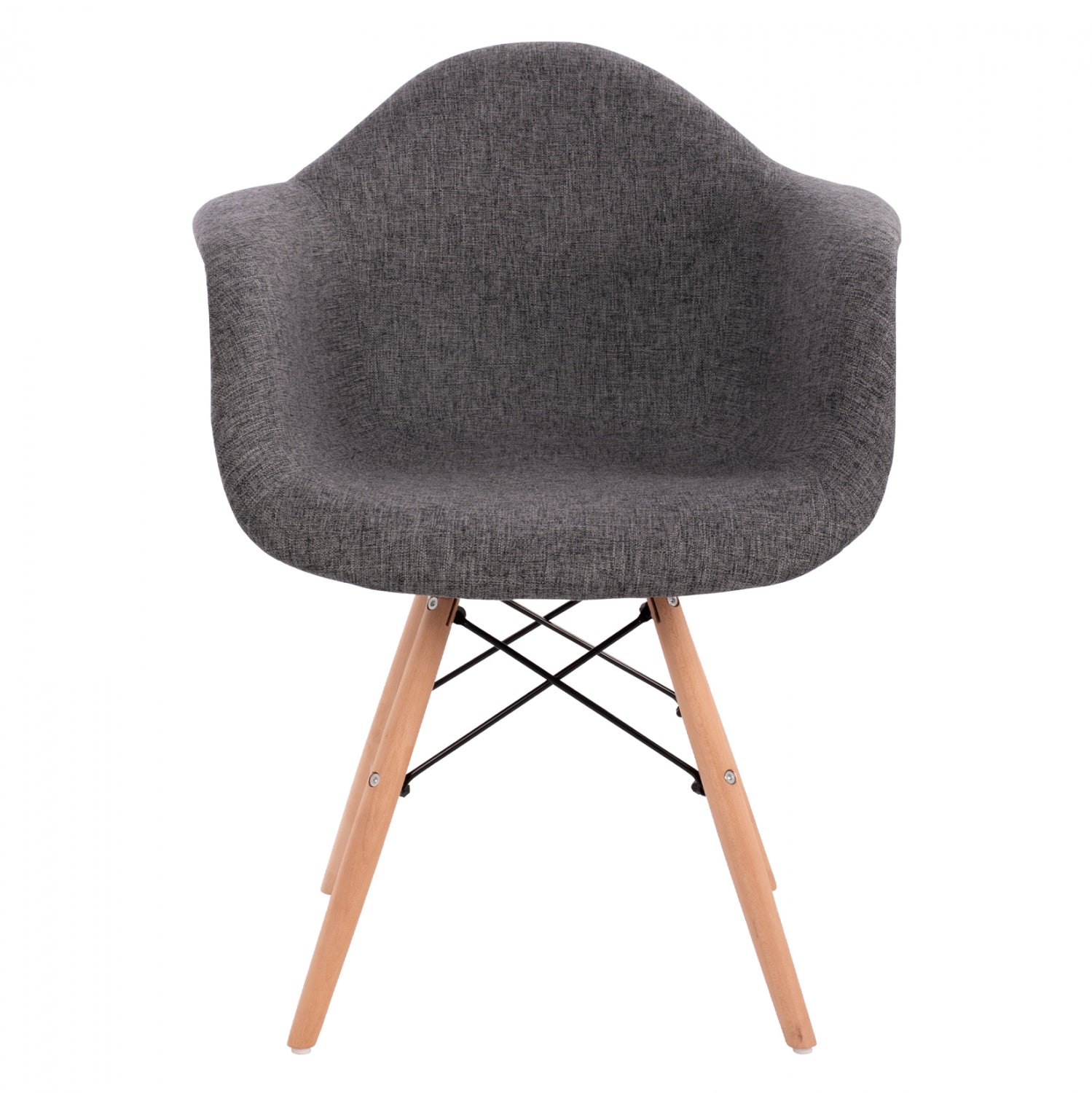 Μοντέρνα πολυθρόνα με γκρι ύφασμα και φυσικά πόδια οξιάς. Ταιριάζει με όλα σχεδόν τα στιλ και είναι μια καρέκλα σταθμός στην ιστορία του design.