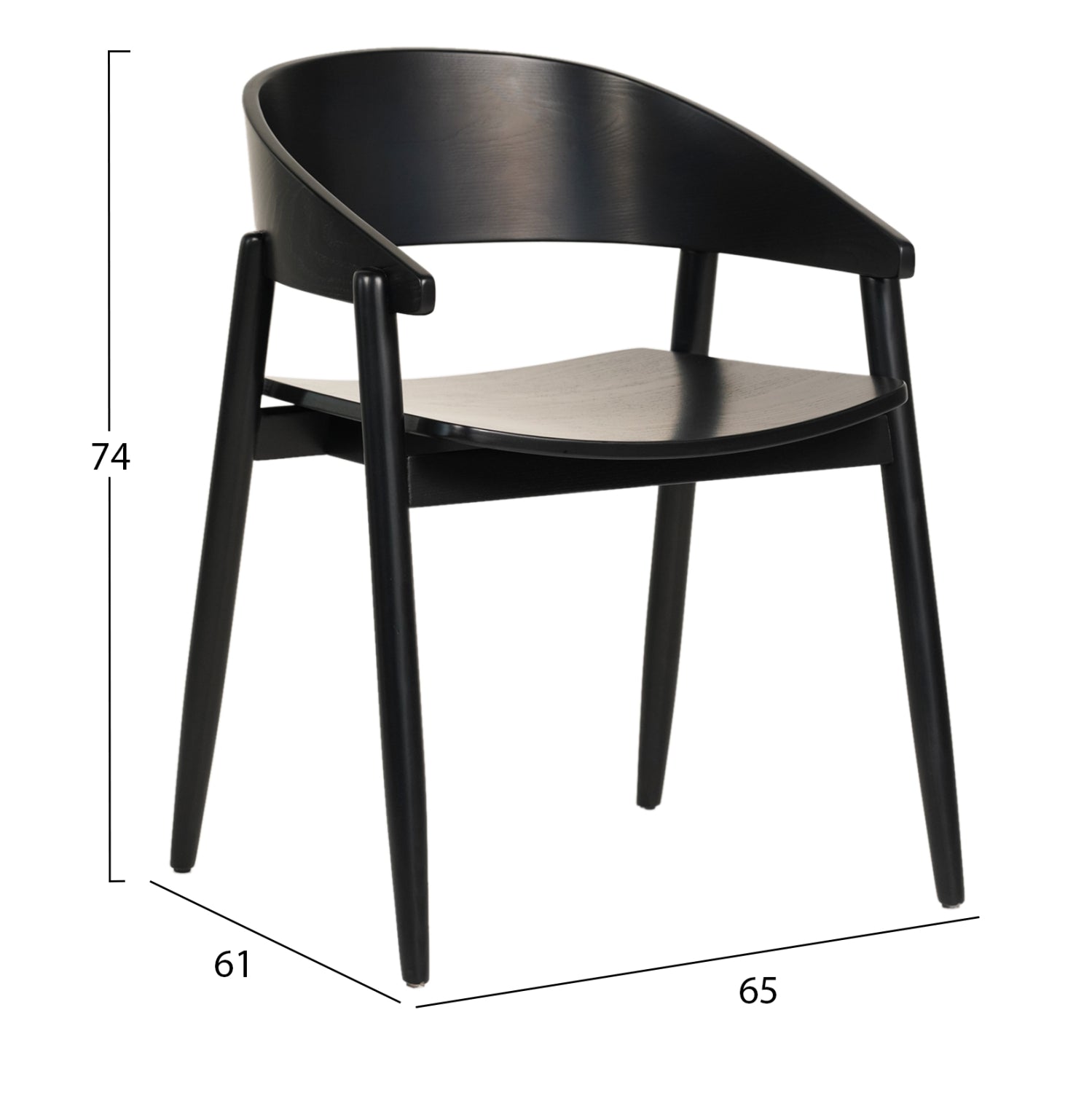 Η πολυθρόνα τραπεζαρίας CANOP δεν έχει ξεχωριστά μπράτσα αλλά ο σχεδιασμός της πλάτης είναι κυρτός αγκαλιάζοντας το σώμα δίνοντας την αίσθηση μπράτσων. Ο σκελετός της όπως και το κάθισμα, είναι από ποιοτικό ξύλο φράξινου σε ΜΑΥΡΟ χρώμα. Μια πολυθρόνα που θα αναβαθμίσει την τραπεζαρία σε κάθε επαγγελματικό χώρο.