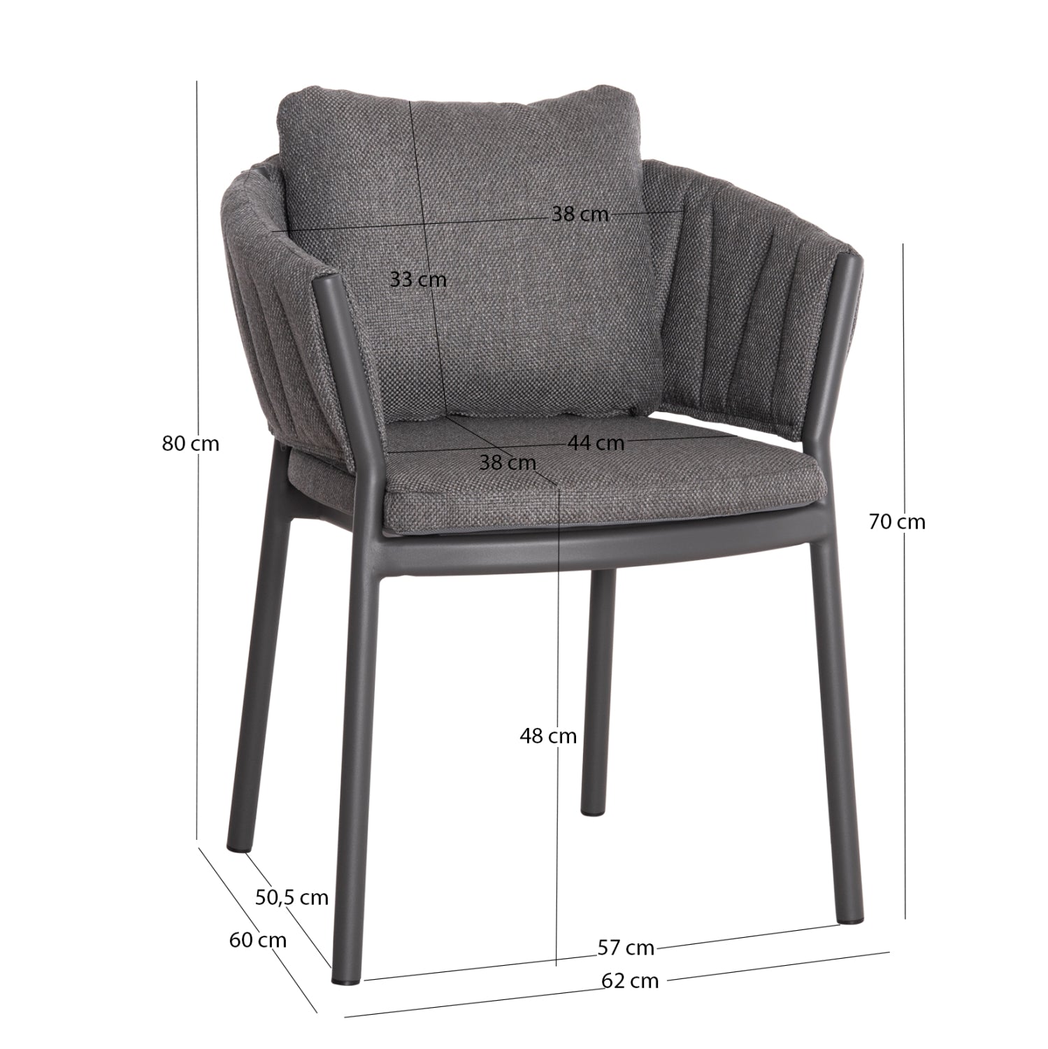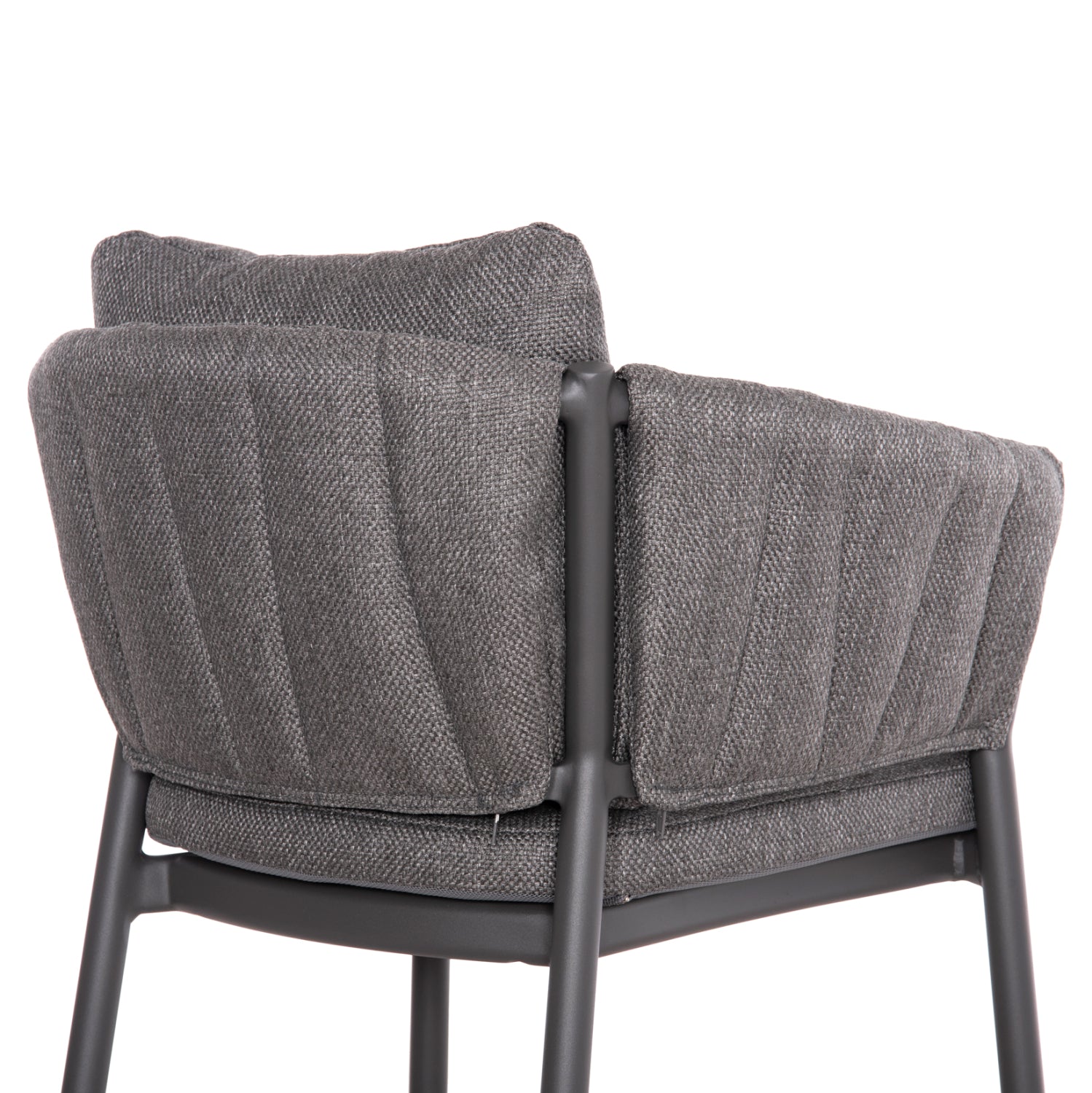 Η πολυθρόνα αλουμινίου SHANKS σε ΣΚΟΥΡΟ ΓΚΡΙ χρώμα έχει ημικυκλική πλάτη και διαθέτει μαξιλάρια πλάτης και καθίσματος. Αισθητικά, είναι επενδυμένη με ύφασμα OLEFIN, ενώ και τα καλύμματα στα μαξιλάρια είναι με OLEFIN ύφασμα, όλα σε ΣΚΟΥΡΟ ΓΚΡΙ χρώμα. Εσείς το μόνο που έχετε να κάνετε είναι να βρείτε το κατάλληλο τραπέζι για να ταιριάξετε αυτή την υπέροχη πολυθρόνα.
