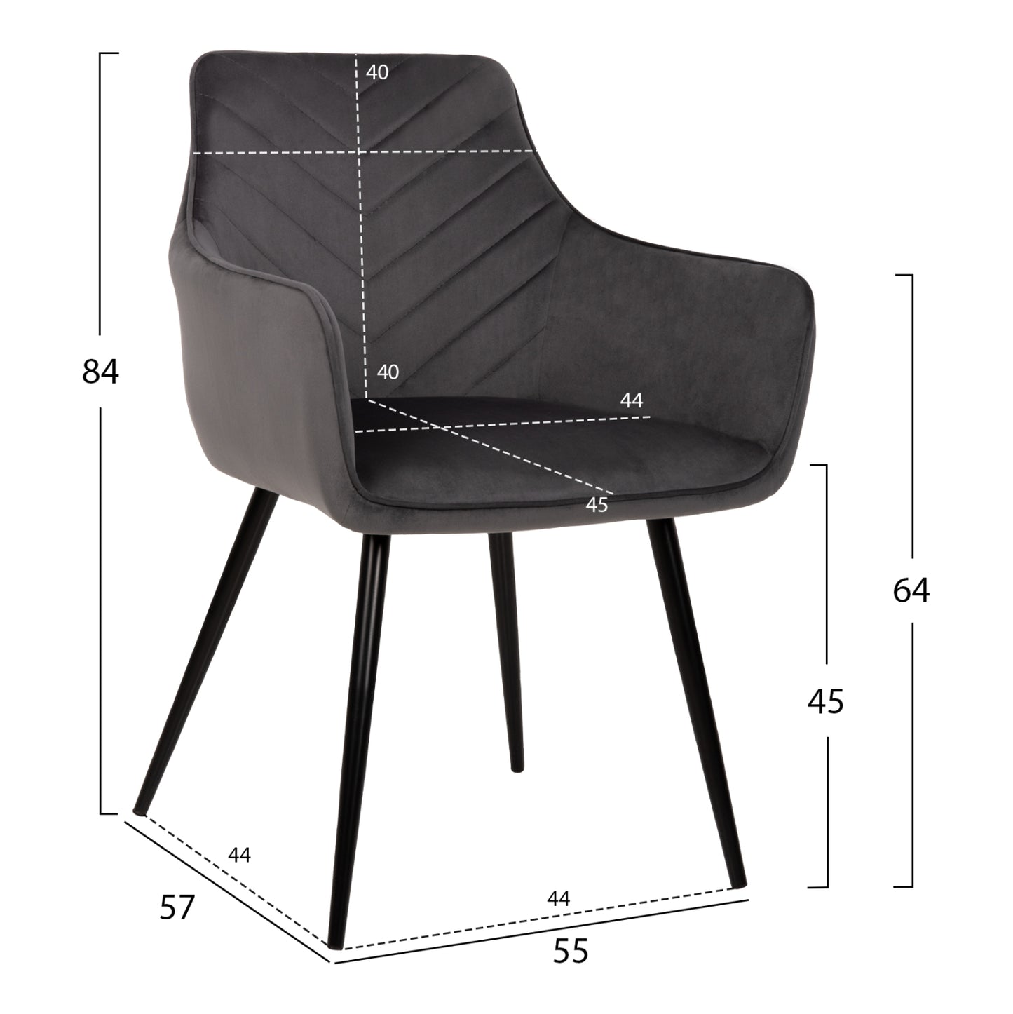Η πολυθρόνα LATRELL είναι μοντέρνα, άνετη και σταθερή! Το κυρίαρχο χρώμα είναι το ΓΚΡΙ, ενώ τα 4 πόδια είναι επίσης σε μαύρο χρώμα. Το κάθισμα της πολυθρόνας είναι άνετο και η πλάτη διαθέτει όμορφες ραφές, ενώ η πολυθρόνα δίνει την αίσθηση ότι αγκαλιάζει το σώμα με τα μπράτσα που είναι ενιαία με το κάθισμα και την πλάτη. Πρόκειται για μια πρόταση λιτή, κυρίως για την τραπεζαρία σας, αλλά και που θα ταιριάξει σχεδόν παντού!