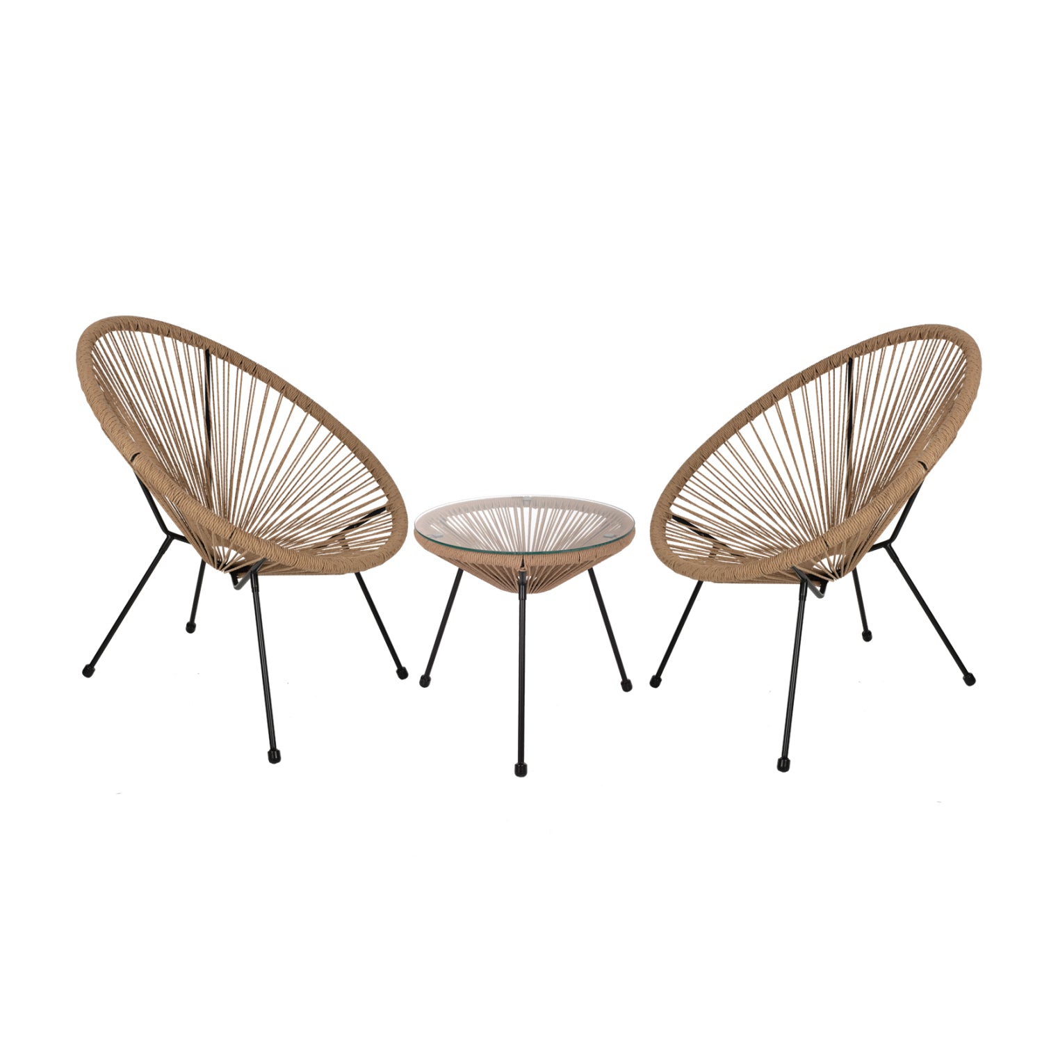 Το ACAPULCO είναι ένα σετ σαλονιού εξωτερικού χώρου σε ΜΠΕΖ και ΜΑΥΡΟ χρώμα, με στρογγυλό τραπεζάκι με γυάλινη επιφάνεια και 2 αναπαυτικές πολυθρόνες τύπου φωλιάς! Η επένδυση σε όλο το σετ είναι από twisted wicker επάνω σε μαύρους μεταλλικούς σκελετούς. Το Wicker δεν είναι υλικό, είναι μέθοδος κατασκευής επίπλων κυρίως για εξωτερικούς χώρους, με βασικό υλικό το συνθετικό Rattan.