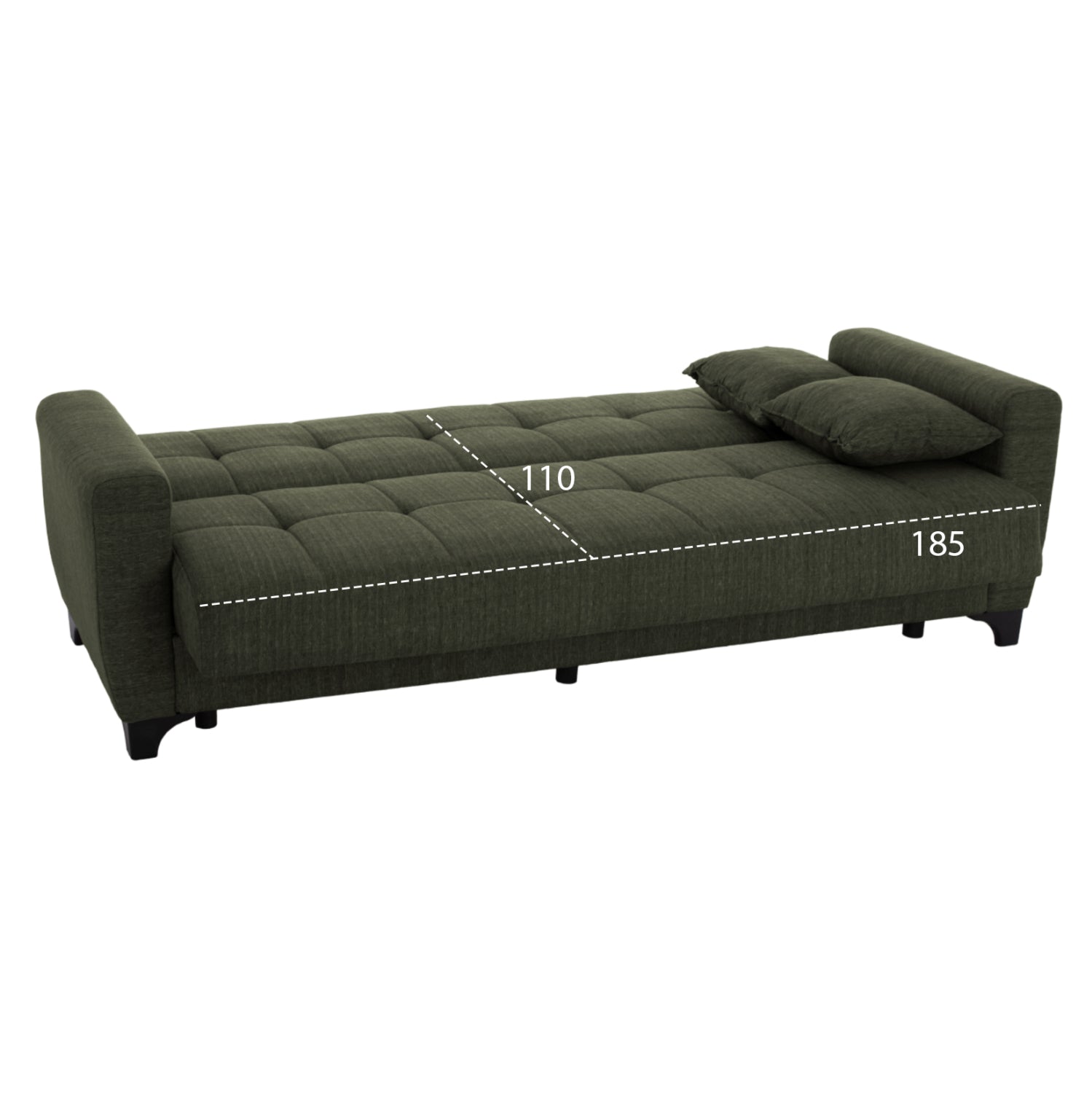 Το κύριο χαρακτηριστικό των καναπέδων, όμως, είναι ότι πέφτει η ψηλή πλάτη και μετατρέπονται σε ένα ακόμα πιο άνετο και μεγάλο κρεβάτι με έναν εύχρηστο μηχανισμό «κλικ-κλακ». Και για να μην υπάρξει ποτέ κανένα πρόβλημα με τους καναπέδες, υπάρχουν επιπλέον πόδια που χρησιμεύουν όταν γίνονται κρεβάτι! Συνέπεια αυτού, βέβαια, είναι και η ύπαρξη δύο αποθηκευτικών χώρων κάτω από το κάθισμά τους, οι οποίοι πάντα είναι χρήσιμοι, ειδικά σε φοιτητικά σπίτια. Τέλος, τα πόδια τους σε μαύρο χρώμα, είναι ψηλά επιτρέποντας το εύκολο καθάρισμα χωρίς να χρειαστεί να τους μετακινήσετε.
