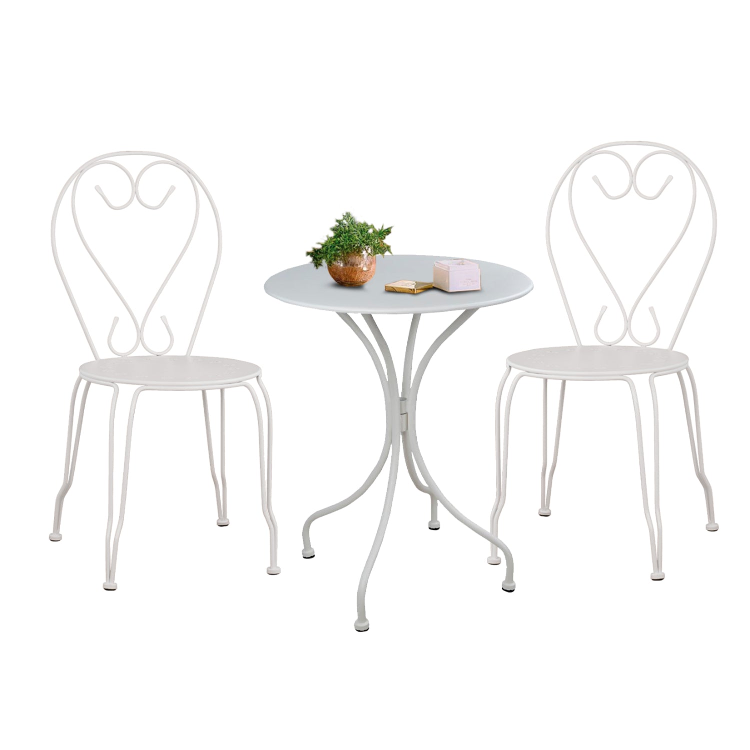 ΗΜ11875—Σετ εξωτερικού χώρου με στρογγυλό μεταλλικό ΛΕΥΚΟ τραπέζι και 2 ΛΕΥΚΕΣ μεταλλικές καρέκλες με σχέδια στην όμορφη πλάτη και στρογγυλό κάθισμα.