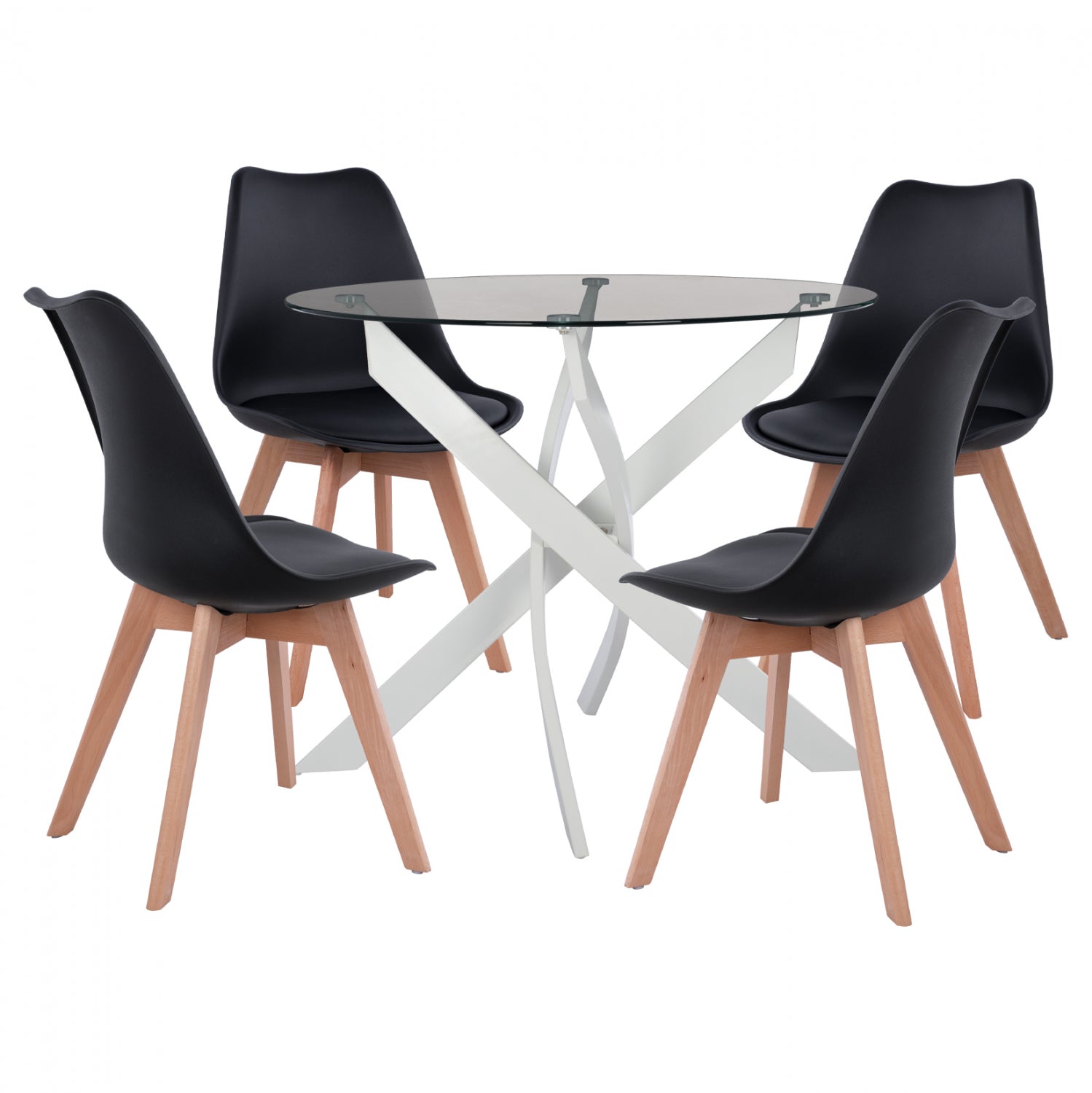 Τέσσερεις μοντέρνες καρέκλες σε έναν άψογο συνδυασμό ξύλου-πολυπροπυλενίου-τεχνοδέρματος σε μαύρη και φυσική απόχρωση. Μια πρόταση που θα αναδείξει κάθε γωνία του σπιτιού σας.