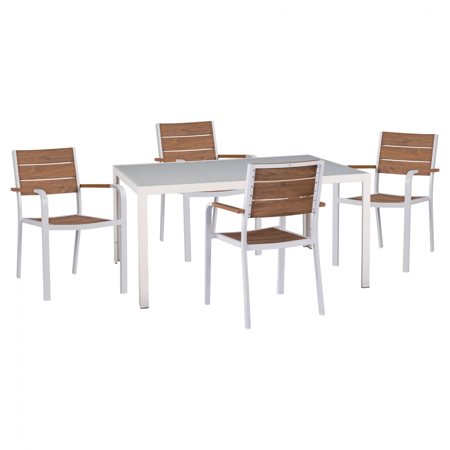 ΣΕΤ ΤΡΑΠΕΖΑΡΙΑΣ 5ΤΜΧ ΤΡΑΠ. 150Χ90 & ΠΟΛ/ΝΕΣ ΑΛΟΥΜΙΝΙΟΥ ΜΕ POLYWOOD ΛΕΥΚΕΣ HM11706.01