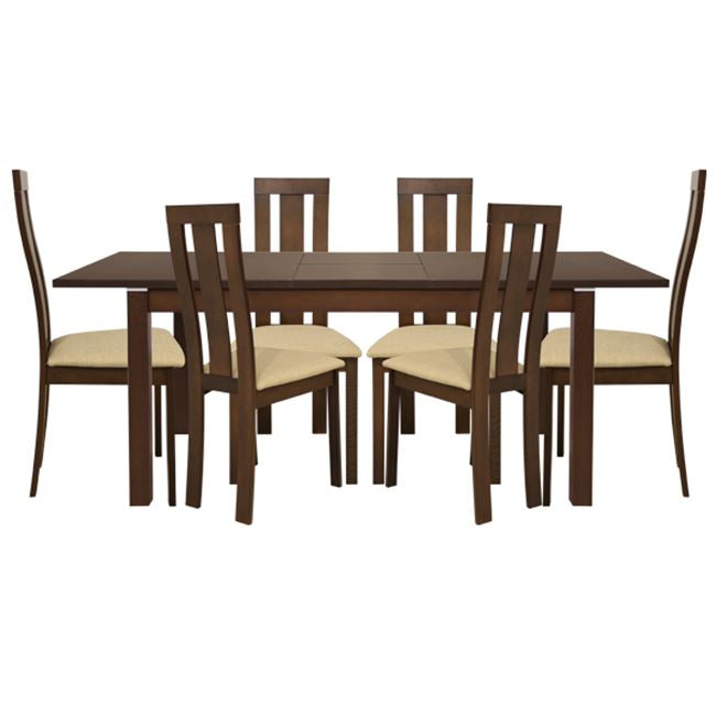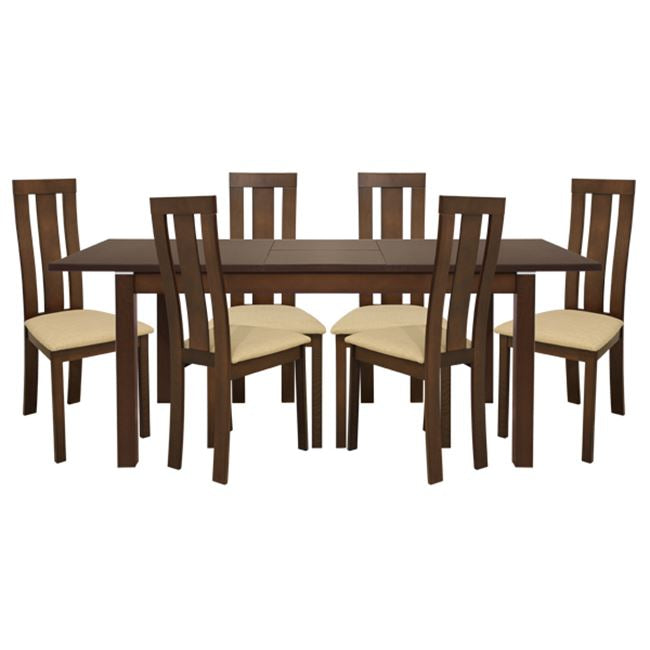 Το τραπέζι είναι κατασκευασμένο από μασίφ σκελετό,mdf επιφάνεια σε καρυδί χρώμα και διαθέτει επέκταση 44 πόντους.