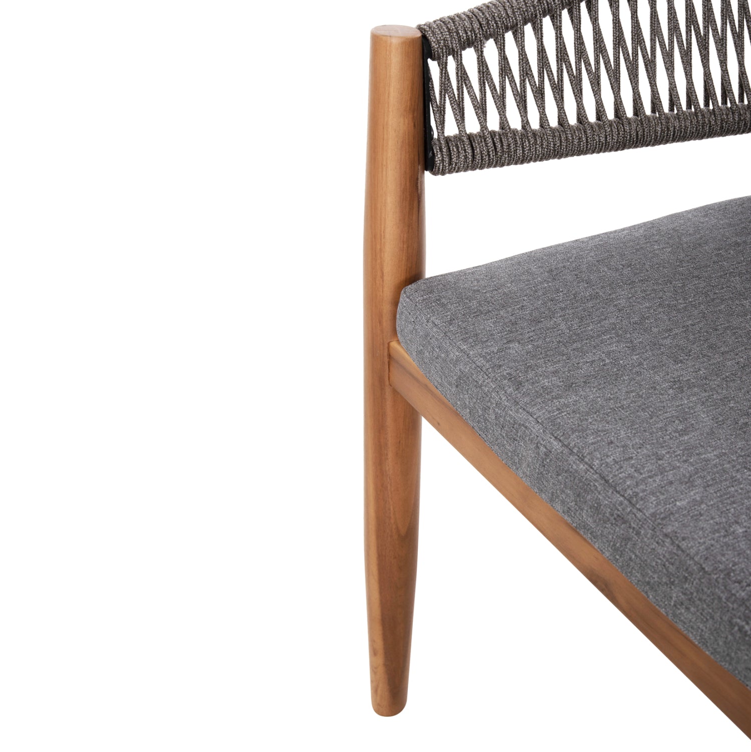 Αυτό το σετ τραπεζαρίας εξωτερικού χώρου 9τμχ αποτελείται από το όμορφο χειροποίητο τραπέζι NAVANT κατασκευασμένο εξολοκλήρου από φυσικό μασίφ ξύλο ΑΚΑΚΙΑΣ σε ΦΥΣΙΚΟ χρώμα, και από 8 καρέκλες τραπεζαρίας NAVAN κατασκευασμένες επίσης από ξύλο ακακίας και σχοινί nylon σε ΓΚΡΙ χρώμα.