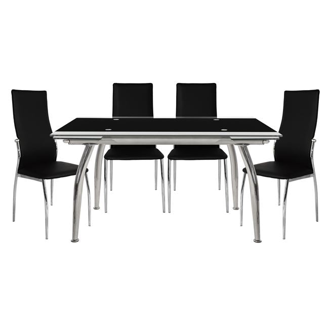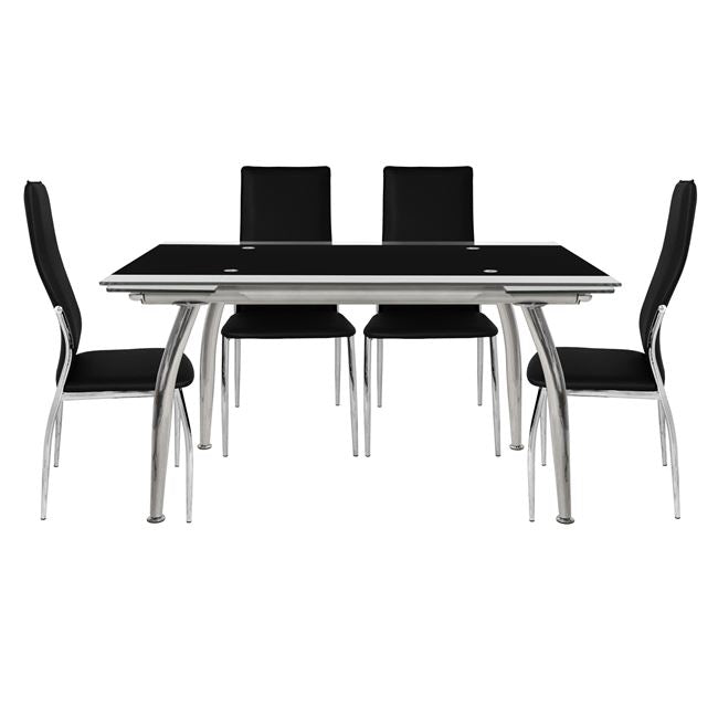 Τέσσερις καρέκλες κουζίνας από μεταλλικό σκελετό χρωμίου και επένδυση από δερματίνη σε μαύρο χρώμα.