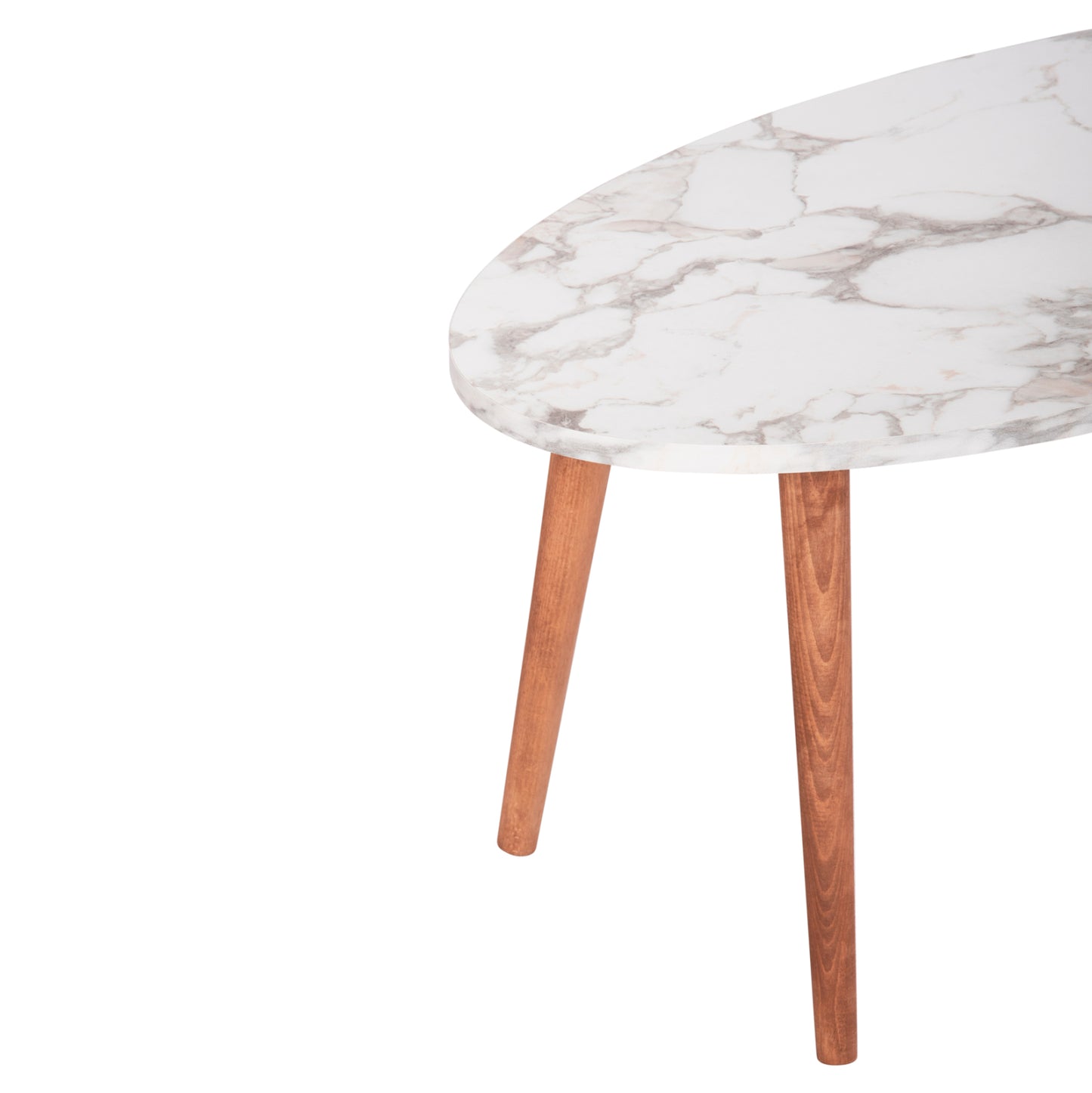 Ανακαλύψτε το VITAL. Ένα σετ που θα ικανοποιήσει και θα εξυπηρετήσει κάθε σας ανάγκη στο χώρο του σαλονιού. Αποτελείται από ένα οβάλ τραπέζι σαλονιού και 3 στρογγυλά βοηθητικά τραπεζάκια σε διαφορετικά ύψη. Οι επιφάνειες των τραπεζιών είναι από μελαμίνη σε όψη ΛΕΥΚΟΥ ΜΑΡΜΑΡΟΥ, ενώ τα πόδια τους είναι ξύλινα σε ΚΑΡΥΔΙ χρωματισμό.