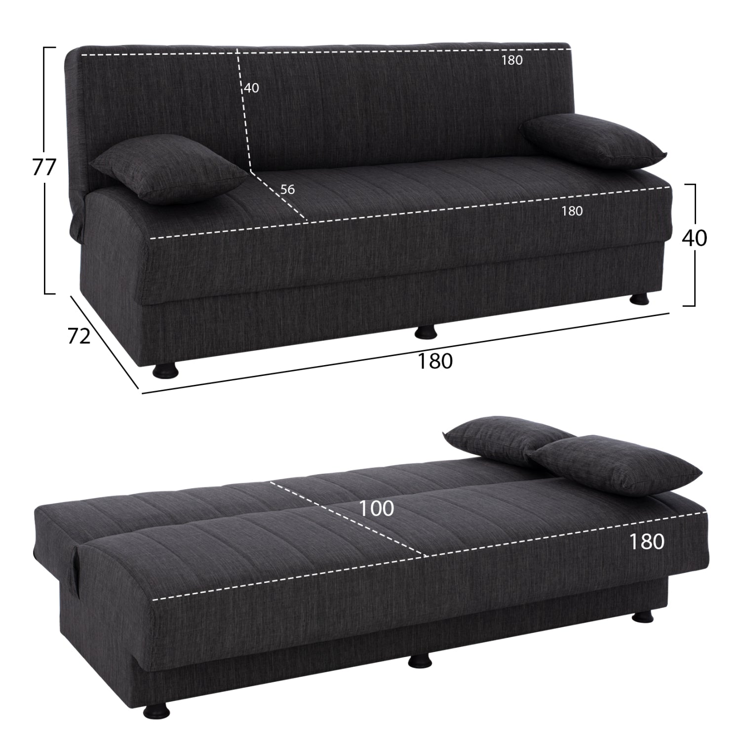 HM3239.03 - 3θέσιος καναπές-κρεβάτι με γκρι ύφασμα, που γίνεται κρεβάτι όταν «πέφτει» η πλάτη του.