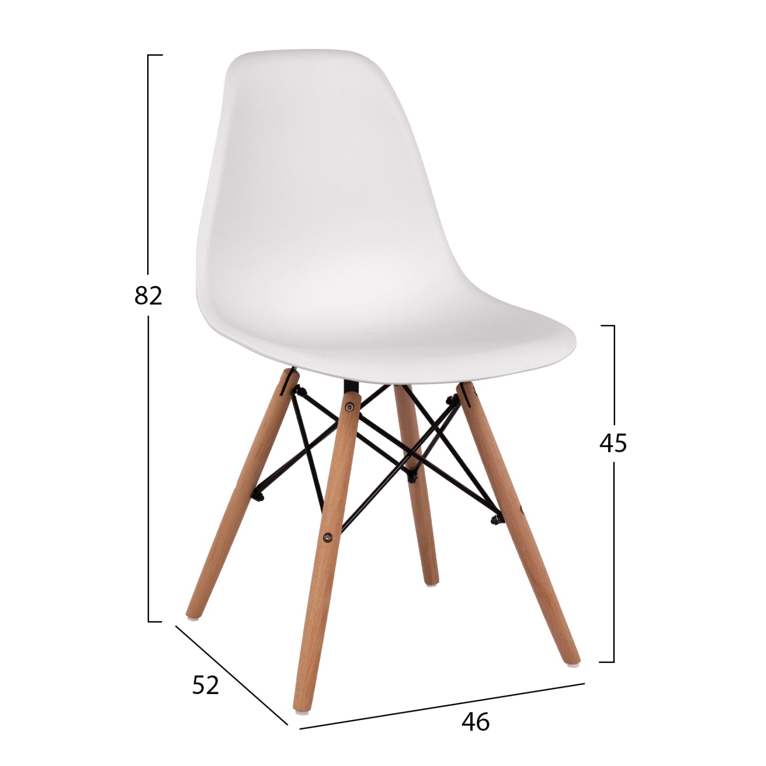 HM8460.01 - Τέσσερεις καρέκλες κουζίνας σε συνδυασμό ξύλου πολυπροπυλενίου σε λευκή και φυσική απόχρωση.