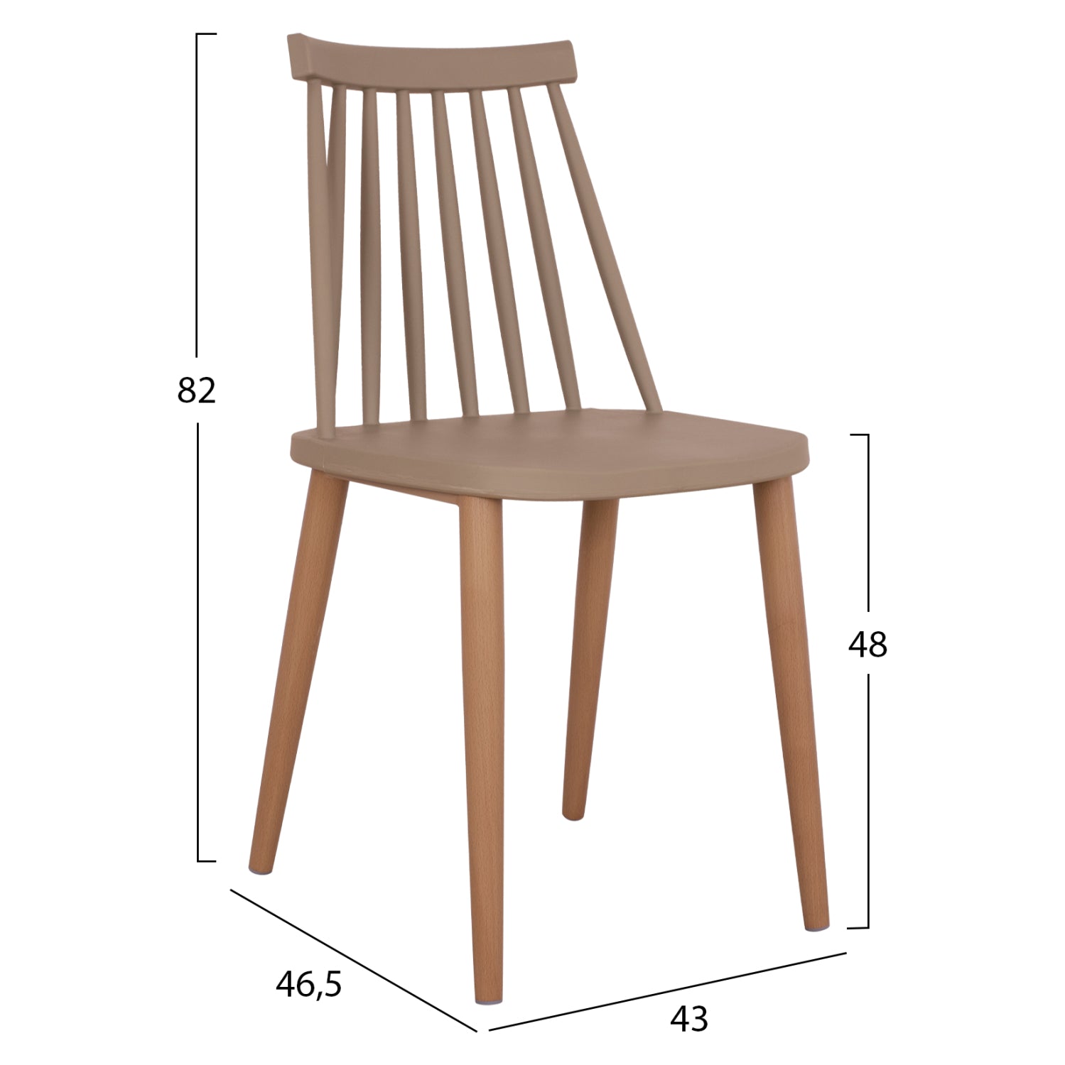 4 καρέκλες πολυπροπυλενίου με μεταλλικά πόδια. Χρώμα καπουτσίνο. Διαστάσεις: 43x45,5x82Υ εκ.