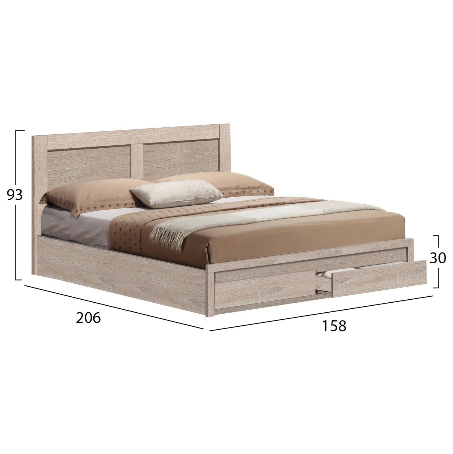 Κρεβάτι διπλό μελαμίνης σε χρώμα sonoma με 2 συρτάρια. Διαστάσεις: 150x200 εκ.