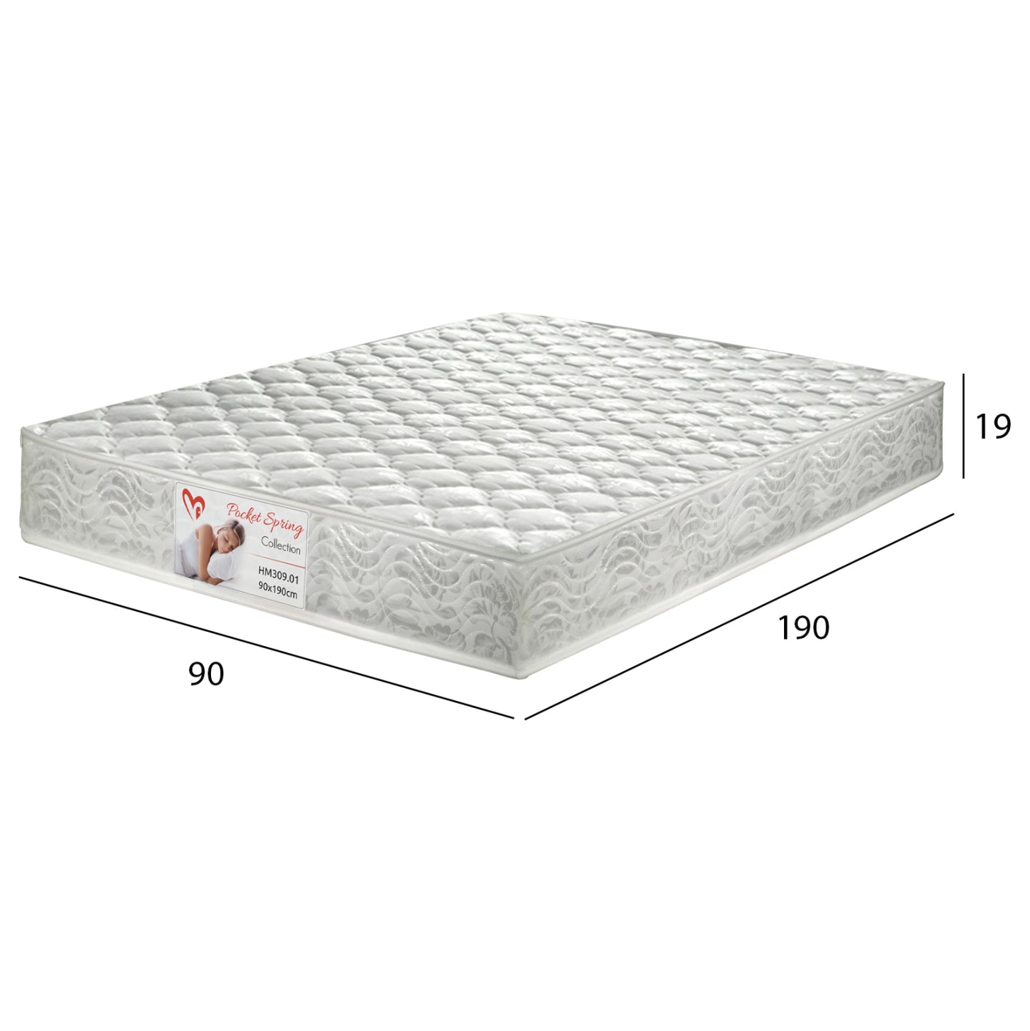 Μονό στρώμα με pocket spring και διπλής όψης. Διαστάσεις: 190x90 εκ.