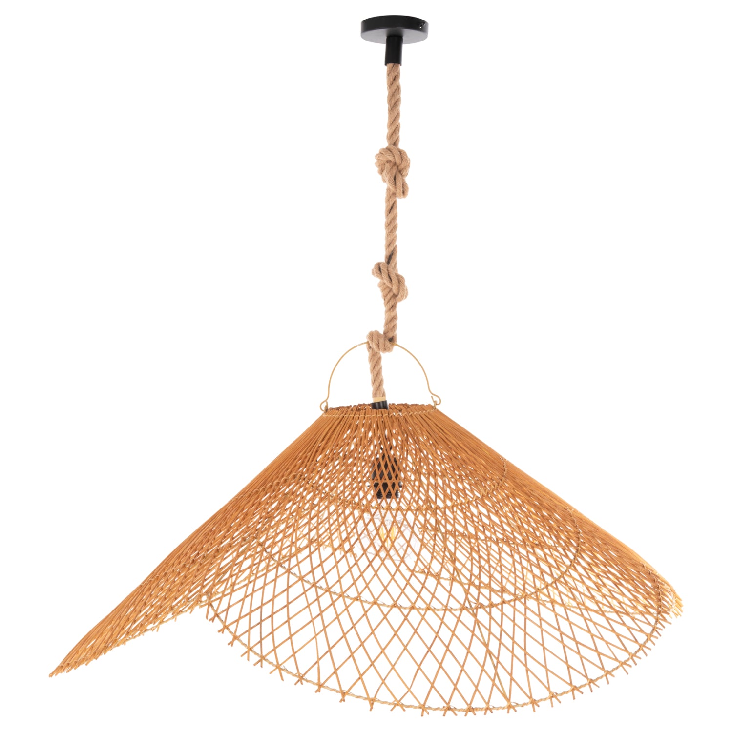Αν επιθυμείτε να διακοσμήσετε το χώρο σας με ένα μεγάλο φωτιστικό σε μοντέρνο στυλ και να το συνδυάσετε με την τελευταία τάση στην διακόσμηση που είναι το σχοινί, αυτό είναι η καλύτερη επιλογή. Είναι ένα μονόφωτο φωτιστικό με κομψότατο καπέλο από φυσικό Rattan σε ΜΠΕΖ ΤΗΣ ΑΜΜΟΥ χρώμα.