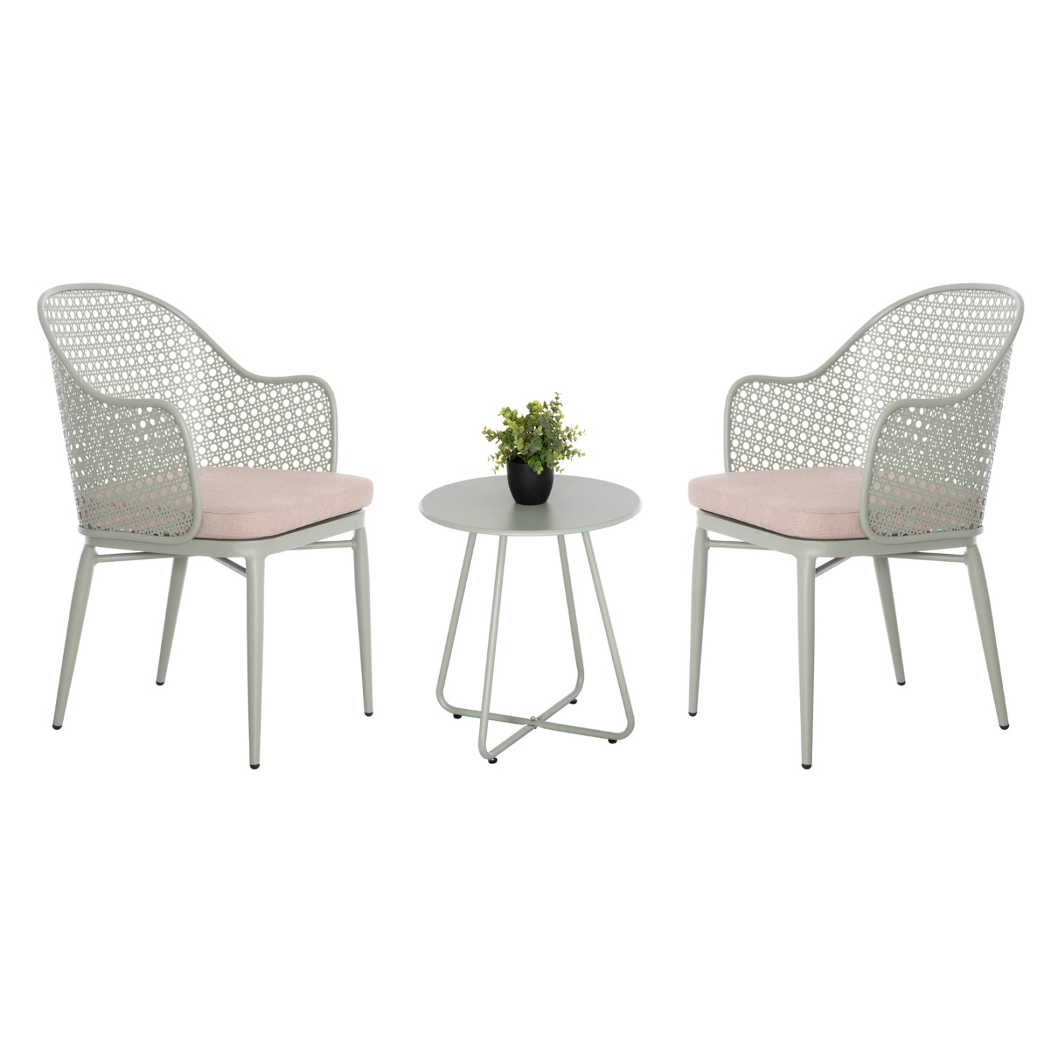 Το OREGO είναι ένα lounge σετ (σαλονάκι) 3τμχ εξωτερικού χώρου, που αποτελείται από 2 πολυθρόνες αλουμινίου κι ένα στρογγυλό μεταλλικό τραπεζάκι, όλα σε χρώμα ΦΥΣΤΙΚΙ. Τα μαξιλάρια καθίσματος στις πολυθρόνες είναι σε γκριζωπή απόχρωση.