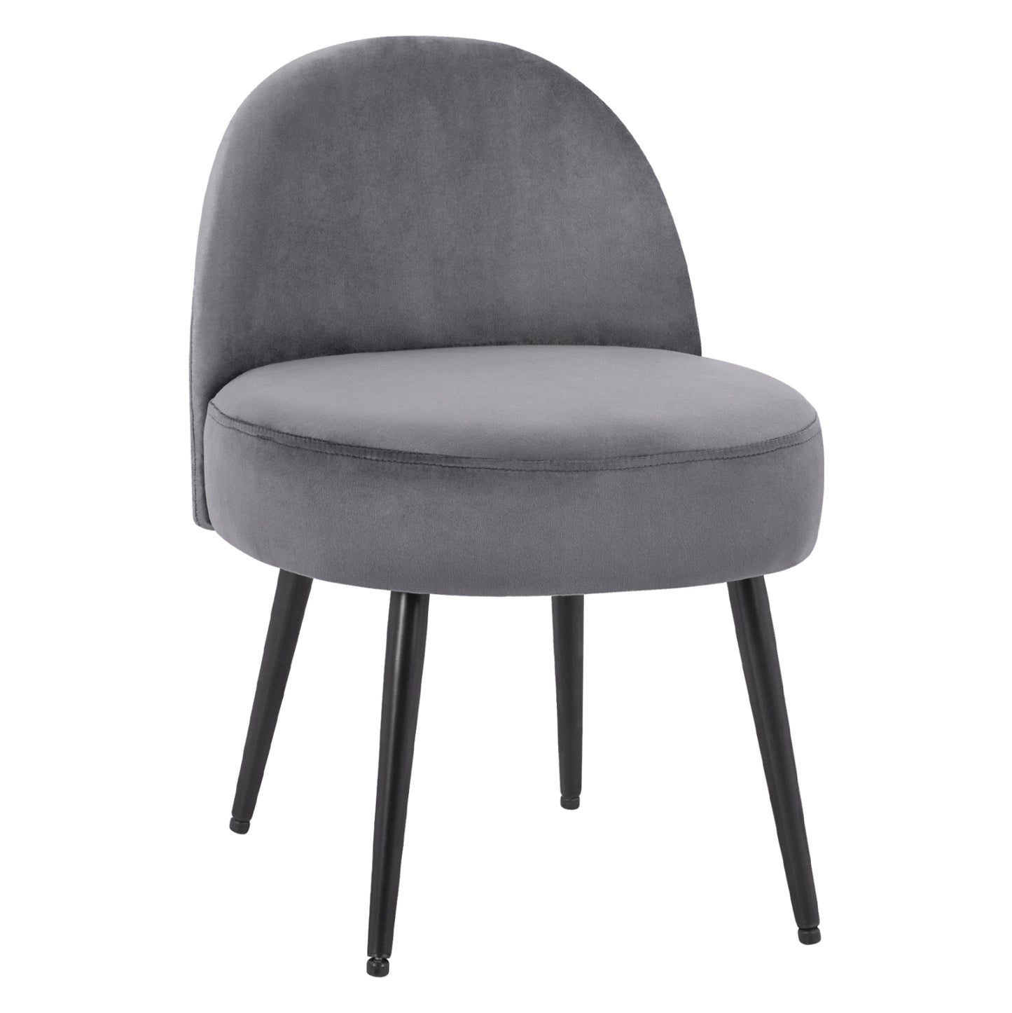Σκαμπό με πλάτη YASMINE από βελούδο σε γκρι απόχρωση με μεταλλικά μαύρα πόδια.