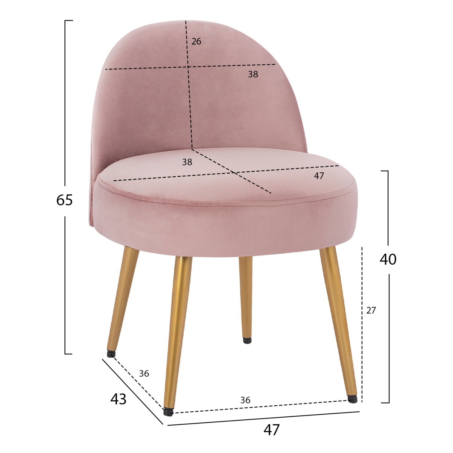 Σκαμπό με πλάτη YASMINE από βελούδο σε απόχρωση σάπιου μήλου με μεταλλικά χρυσά πόδια.