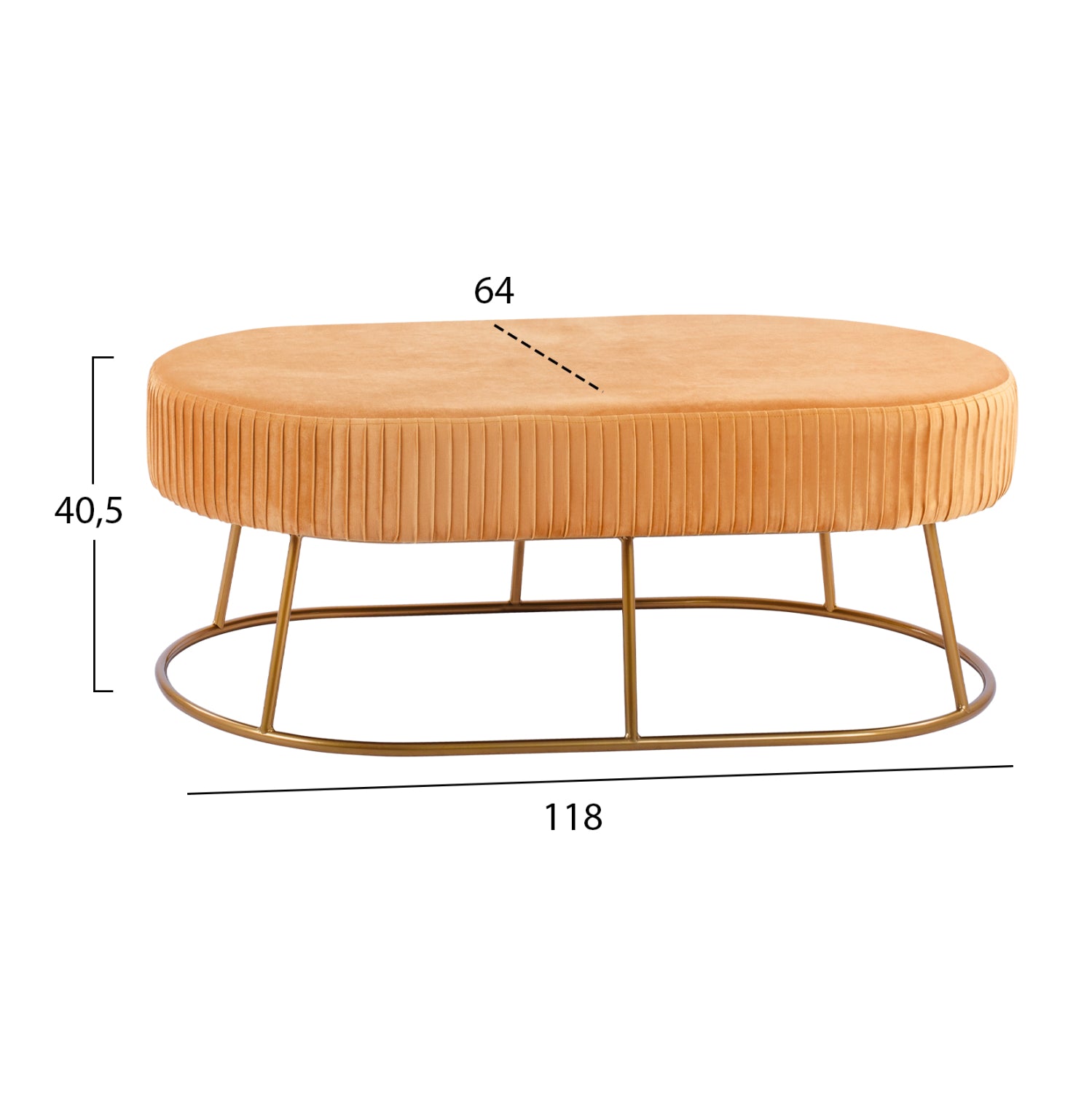 Σκαμπό παγκάκι ALINAFE από βελούδο σε χρυσή απόχρωση με μεταλλική βάση.