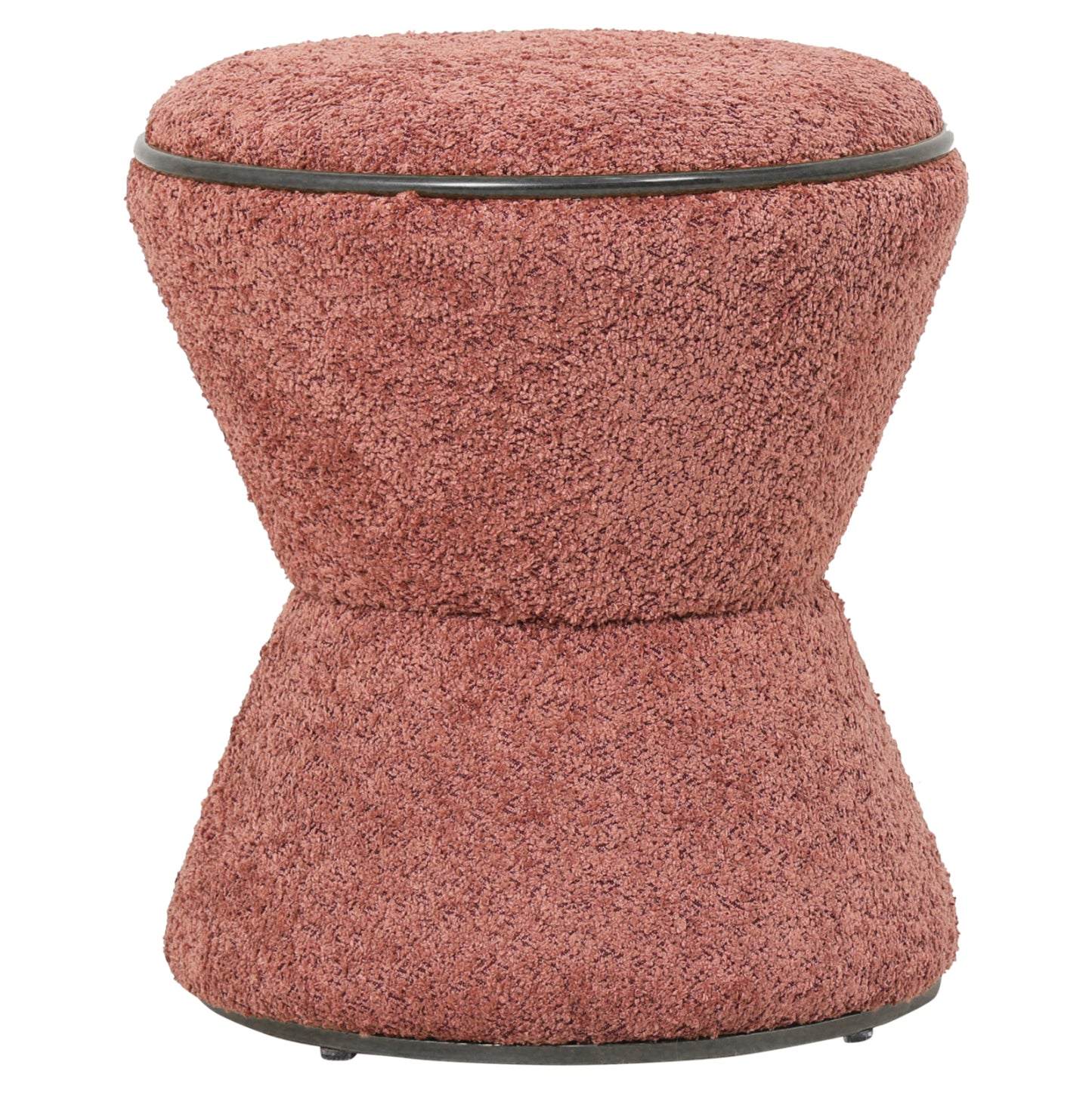 Σκαμπό κυλινδρικό LINNER επενδυμένο με ΡΟΖ μπουκλέ ζεστό ύφασμα και μαύρη λεπτομέρεια («δαχτυλίδι») στο κάθισμα και στην βάση.