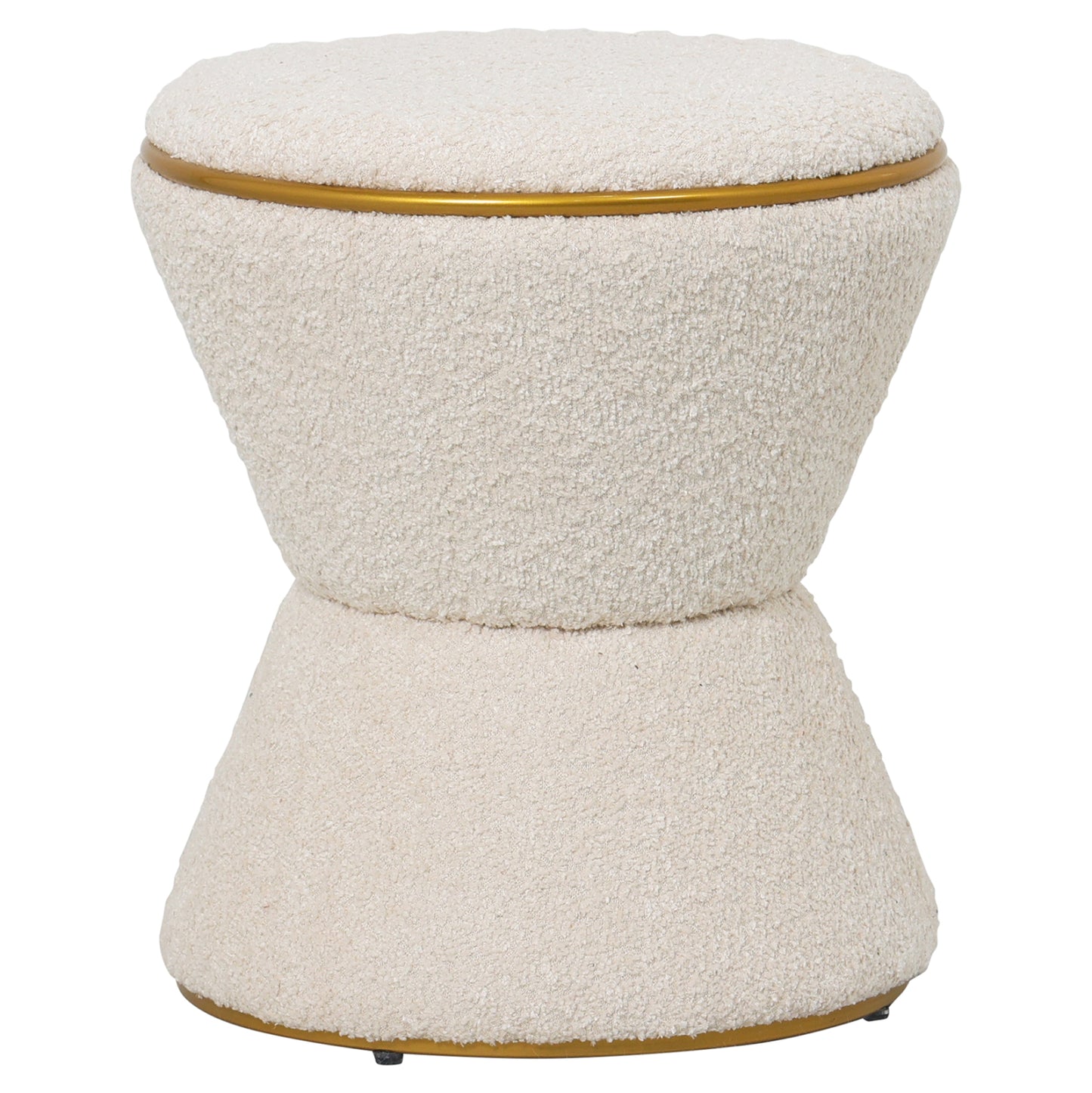 Σκαμπό κυλινδρικό LINNER επενδυμένο με ΕΚΡΟΥ μπουκλέ ζεστό ύφασμα και ΧΡΥΣΗ μεταλλική λεπτομέρεια («δαχτυλίδι») στο κάθισμα και στην βάση.