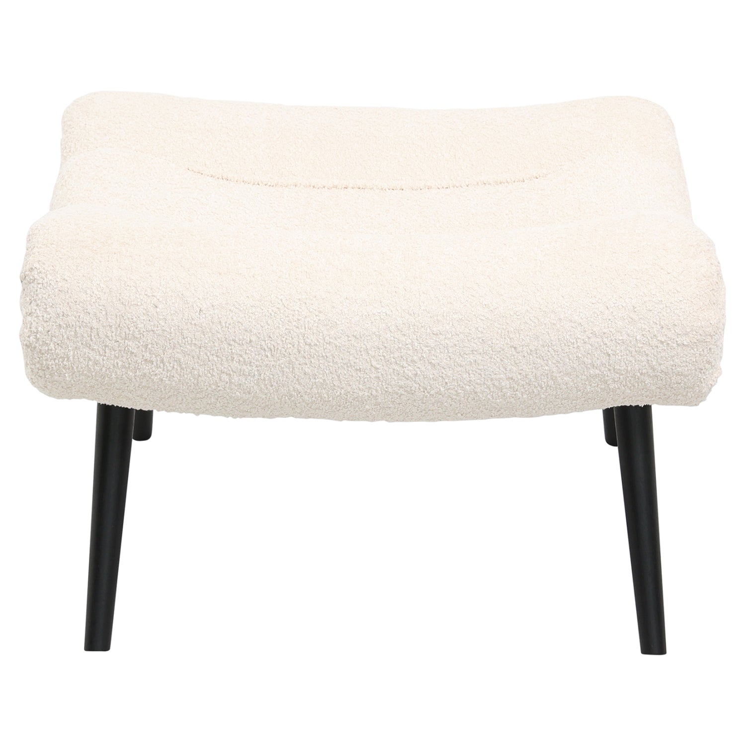 Σκαμπό υποπόδιο KEMBA επενδυμένο με ΕΚΡΟΥ μπουκλέ ζεστό ύφασμα και μαύρα ξύλινα πόδια.