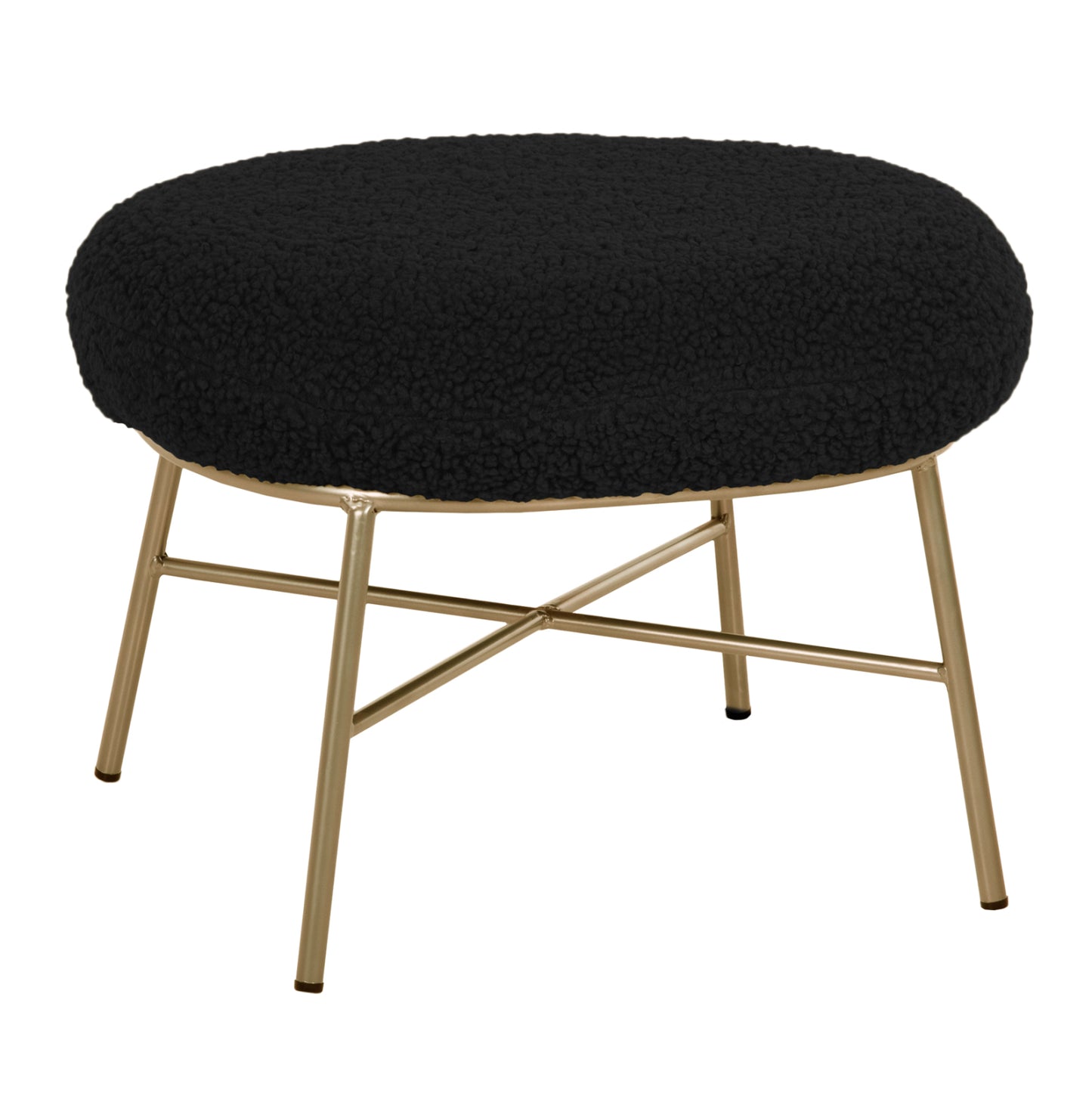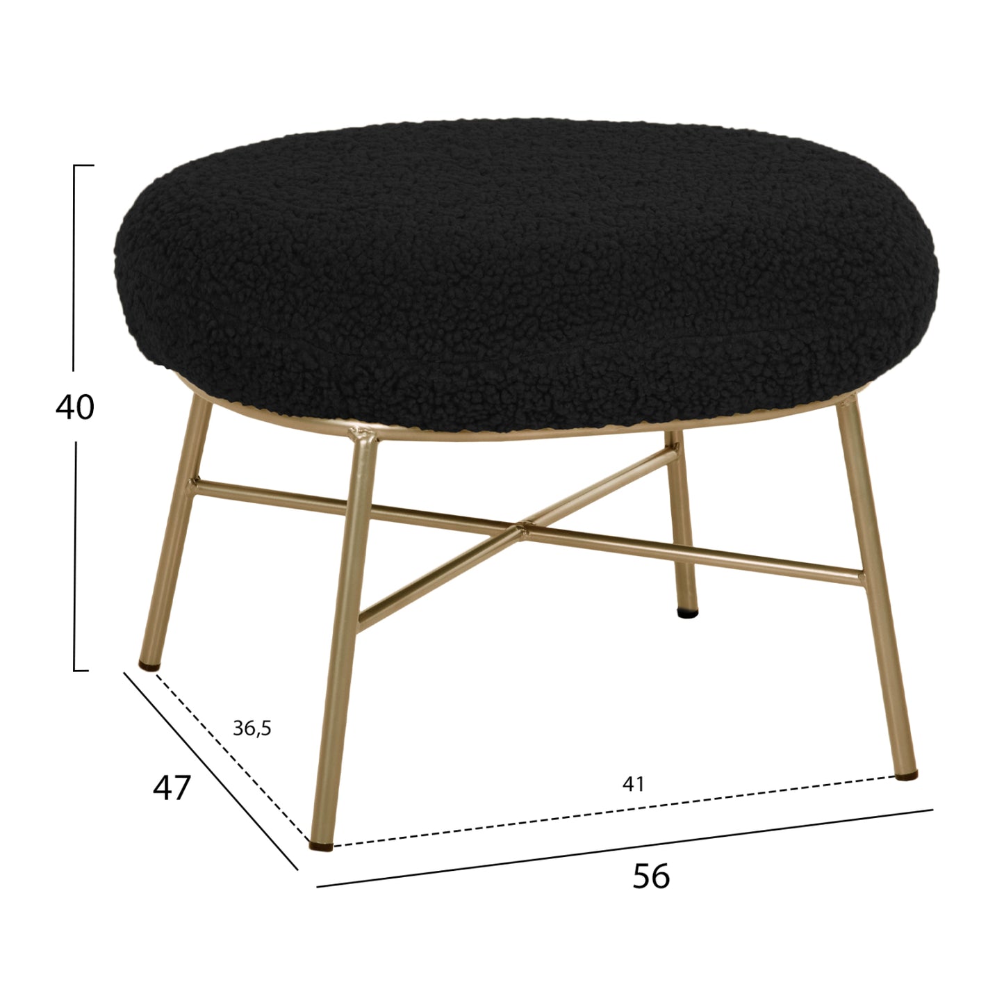 Το σκαμπό/υποπόδιο TRUDI είναι μια μοντέρνα και στιλάτη πρόταση που θα αφήσει το στίγμα του σε όποιο σαλόνι κι αν τοποθετηθεί. Το οβάλ του σχήμα με την ΧΡΥΣΗ μεταλλική βάση με τα πόδια που συνδέονται με χιαστί διάταξη, σε συνδυασμό με το ζεστό μπουκλέ ύφασμα σε ΜΑΥΡΟ χρώμα, συνθέτουν ένα όμορφο και πρακτικό έπιπλο, που μπορεί να συνδυαστεί ποικιλοτρόπως στην διακόσμηση του σαλονιού, αλλά κυρίως με μια όμορφη και ίδιας αισθητικής πολυθρόνα ως υποπόδιο.