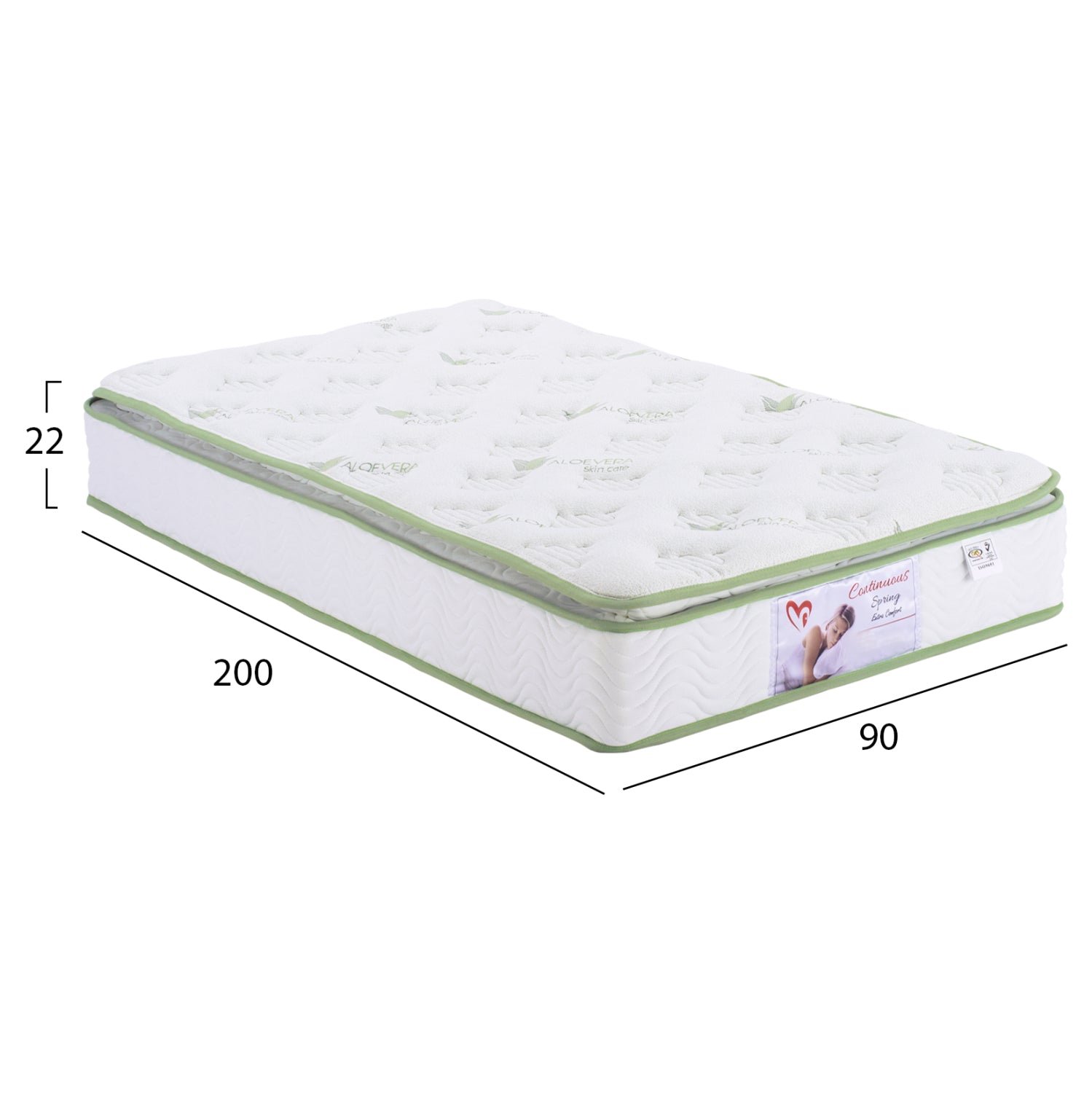 Στρώμα με συνεχόμενα ελατήρια (bonnell) σε διάσταση μονού στρώματος και μονής όψης, με ενσωματωμένο ανώστρωμα (pillow top) με ALOE VERA.