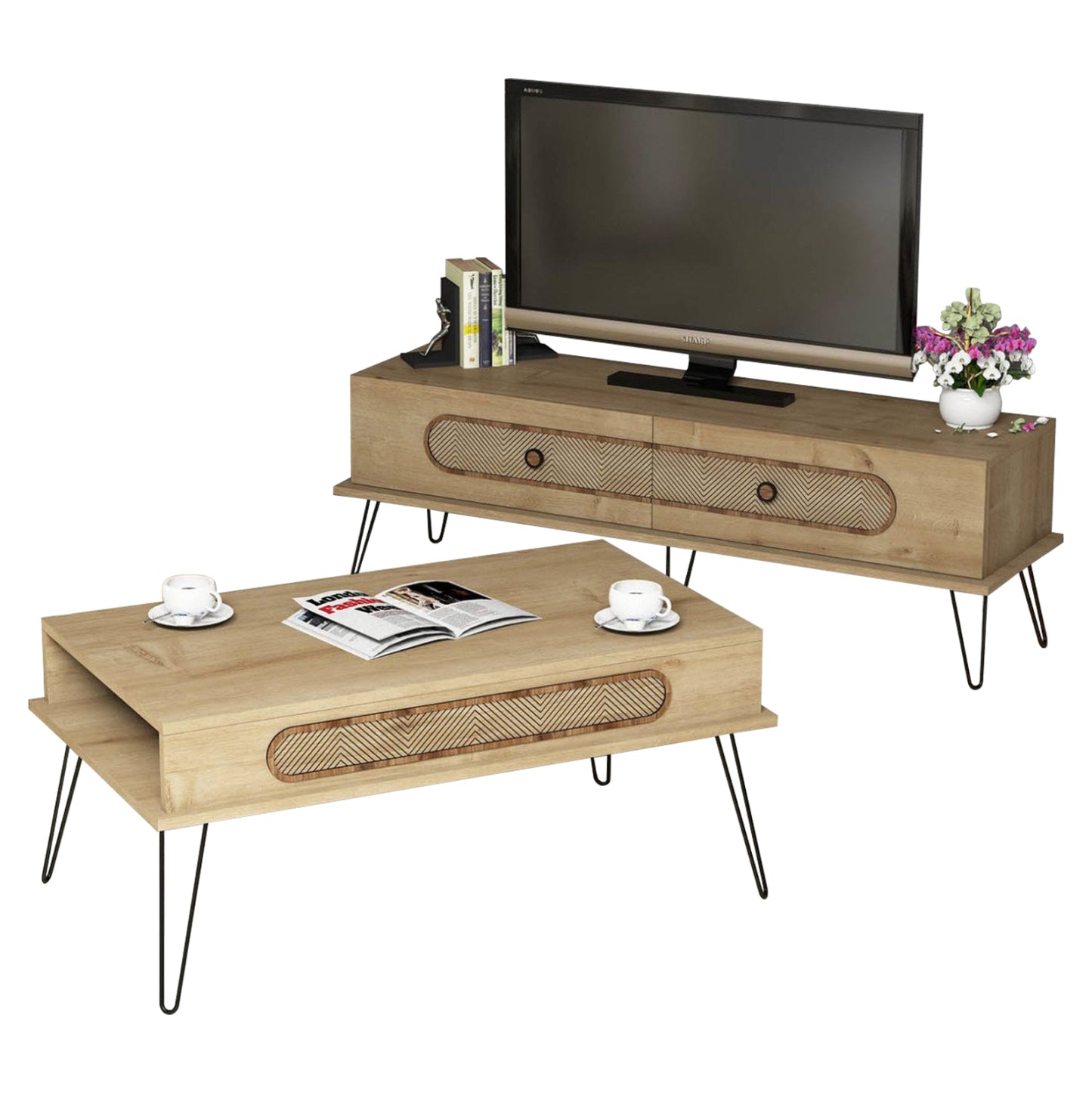 Η σύνθεση ΗΜ11851.02 θα αλλάξει την όψη στο σαλόνι σας και θα σας προσφέρει την αναβάθμιση που θέλετε. Είναι λιτή και αποτελείται από έναν συνδυασμό επίπλων για την τηλεόρασή σας με μονάδα δαπέδου, και ένα τραπεζάκι σαλονιού. Όλη η σύνθεση είναι της ίδιας σειράς με συνδυασμό χρωμάτων φυσικό ΟΑΚ.