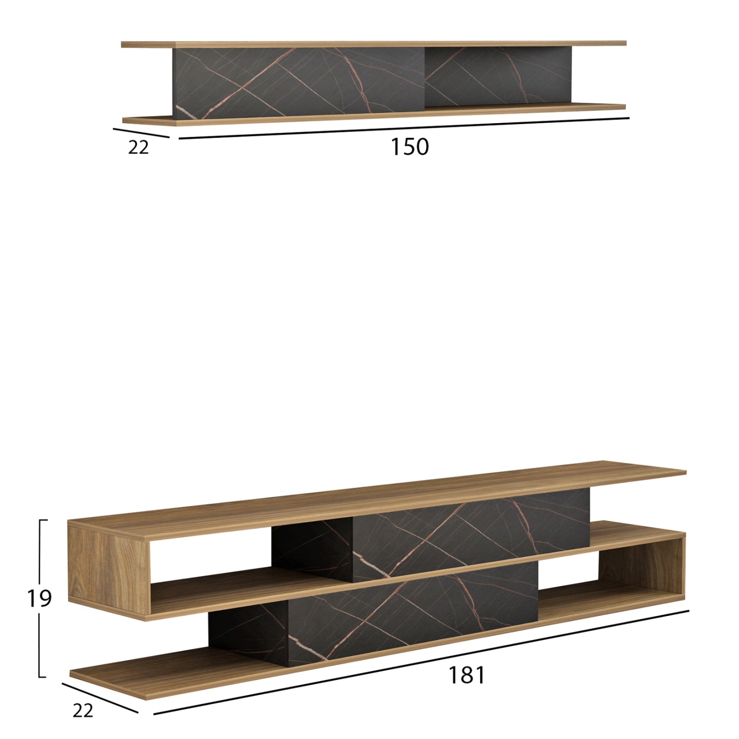 ΣΥΝΘΕΤΟ ΤΗΛΕΟΡΑΣΗΣ BIRGITTA HM8903.12 ΜΕΛΑΜΙΝΗ ΦΥΣΙΚΟ-ΜΑΥΡΟ ΜΑΡΜΑΡΟ 181x31,5x39,6Υεκ