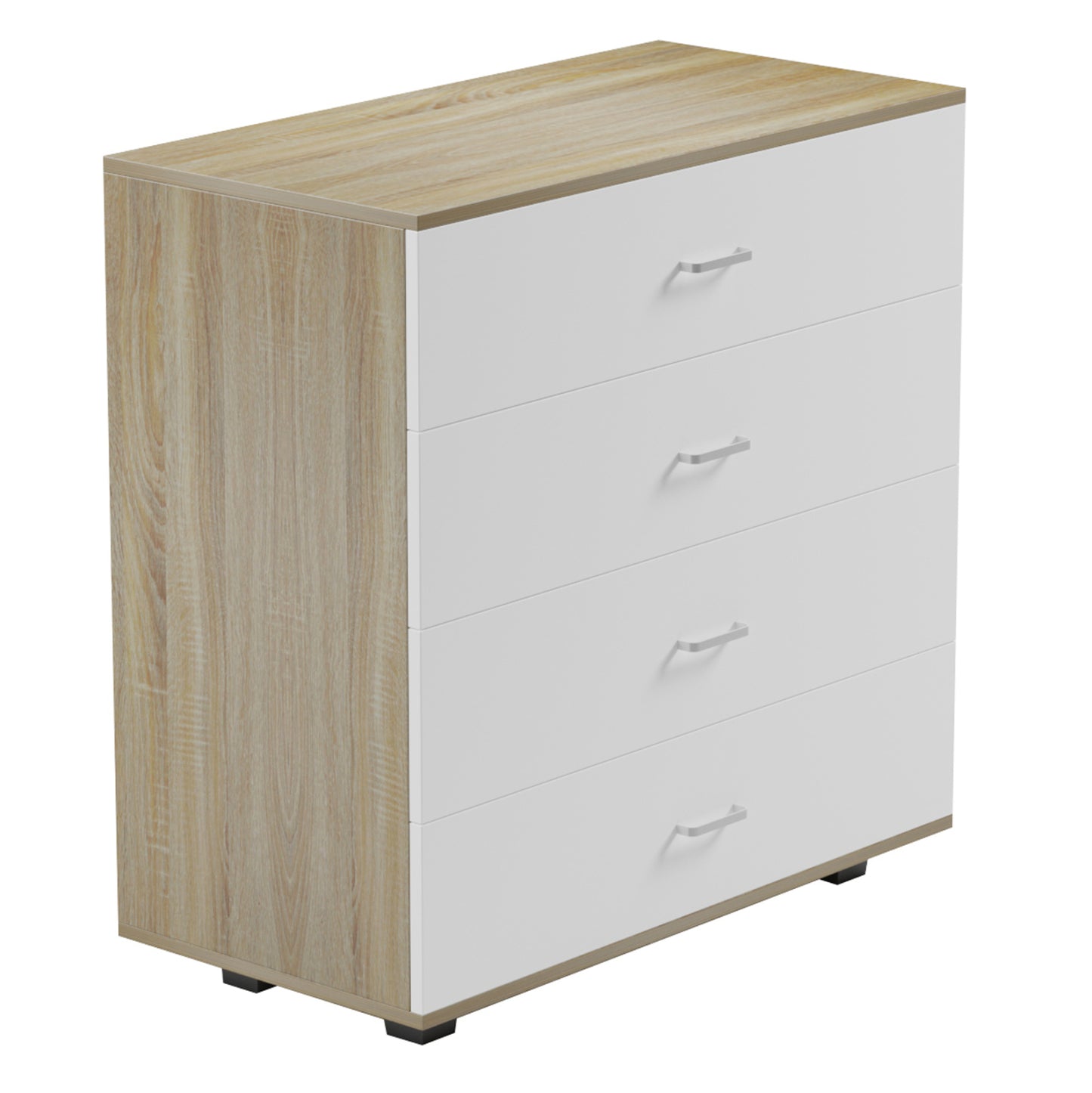 Η ΗΜ8996.04 είναι μια μεγάλη συρταριέρα με 4 φαρδιά συρτάρια που θα ικανοποιήσει όλες τις ανάγκες σας. Έχει όμορφη διχρωμία ΣΟΝΟΜΑ με ΛΕΥΚΑ συρτάρια, με χερούλια σε ασημί απόχρωση. Τα μαύρα ποδαράκια της συρταριέρας, είναι σταθερά και φαρδιά προσφέροντας στιβαρότητα στην κατασκευή και ταυτόχρονα δημιουργούν μια ευχάριστη διχρωμία με το κυρίως σώμα της συρταριέρας.