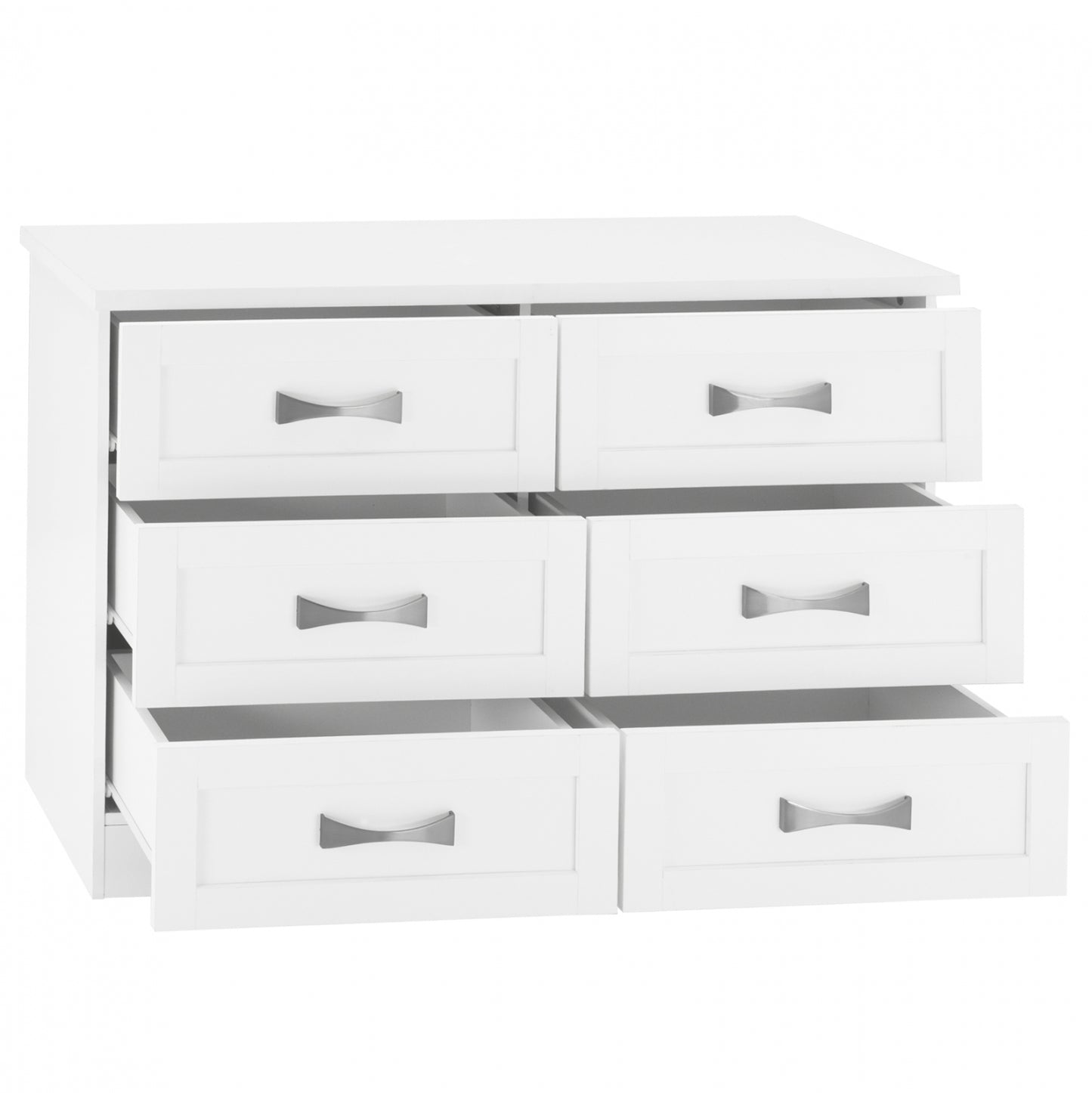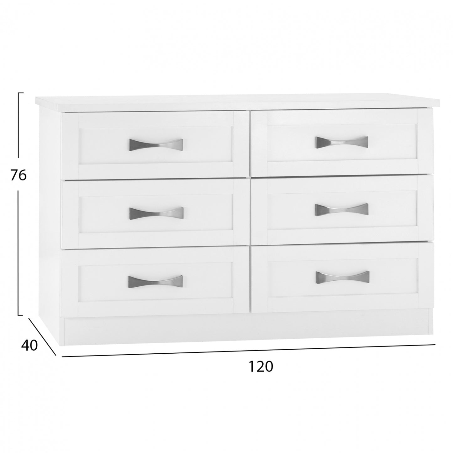 Διαθέτει έξι ευρύχωρα συρτάρια για να τοποθετήσετε τα προσωπικά σας αντικείμενα. Τα χερούλια είναι μεταλλικά σε ασημί απόχρωση.