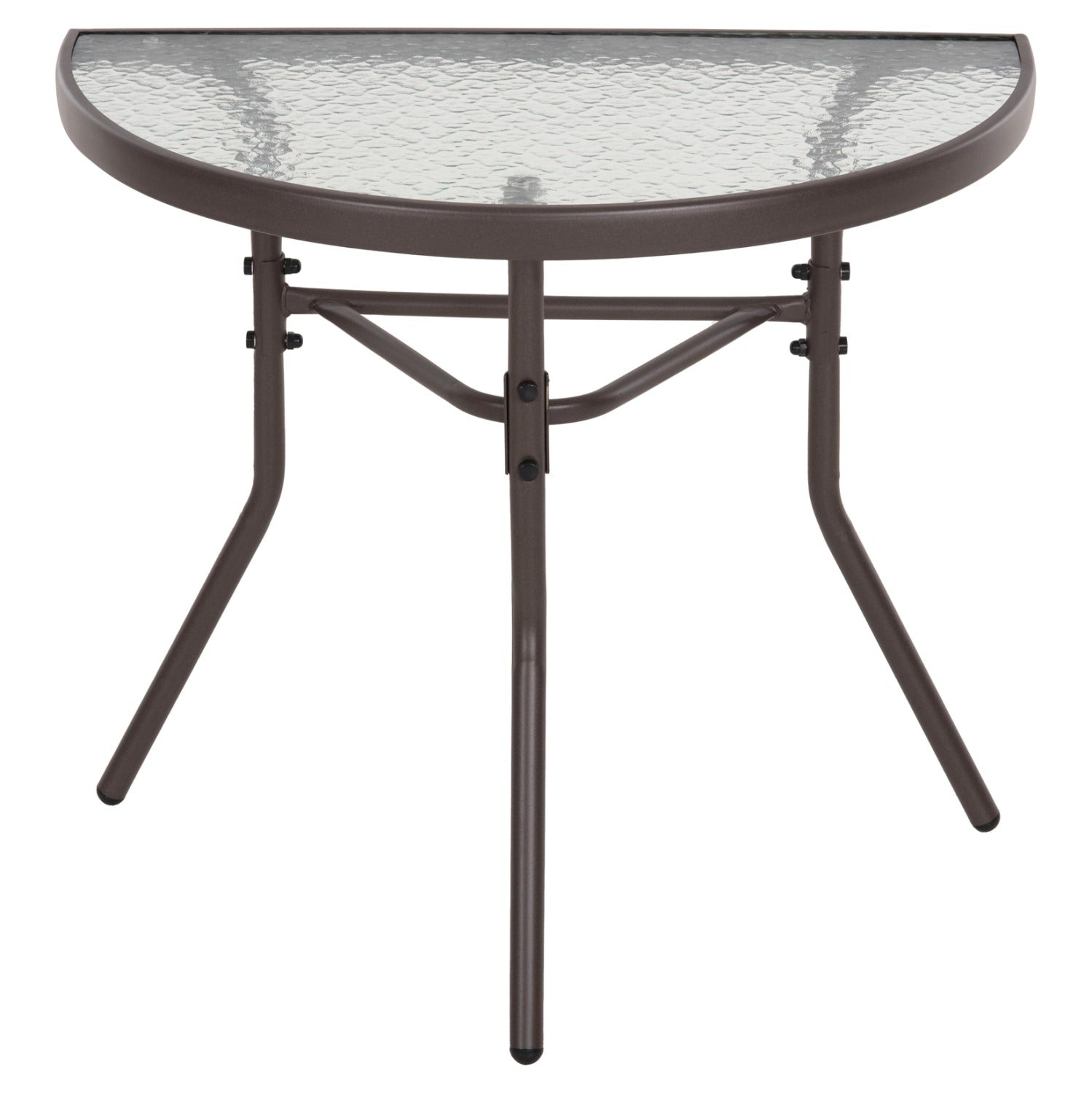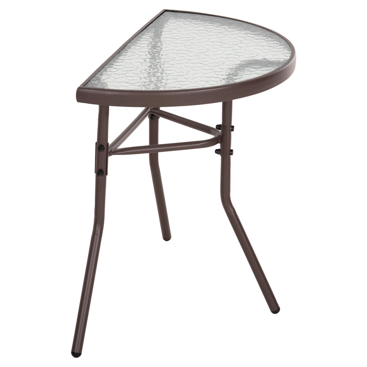 Το LIMA, σε ΚΑΦΕ χρώμα σκελετού, είναι ένα τραπέζι σε σχήμα ημικύκλιου (μισό στρογγυλό) με επιφάνεια από ημιδιάφανο γυαλί ασφαλείας. Η γυάλινη επιφάνεια στηρίζεται σε 3 μεταλλικά πόδια με όμορφη καμπυλωτή διάταξη. Ένα τραπέζι ειδικά κατασκευασμένο για μικρούς και στενούς χώρους, το οποίο έχει την δυνατότητα να εφάπτεται σε τοίχους και κάγκελα, εξοικονομώντας χώρο!