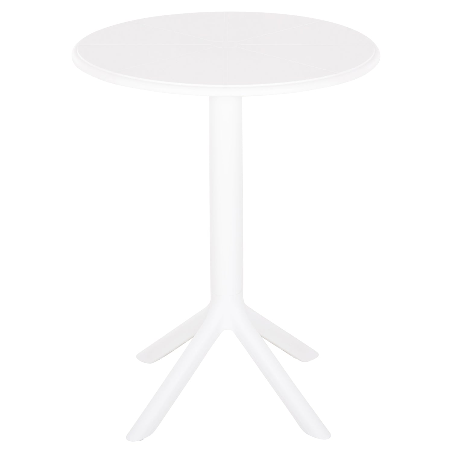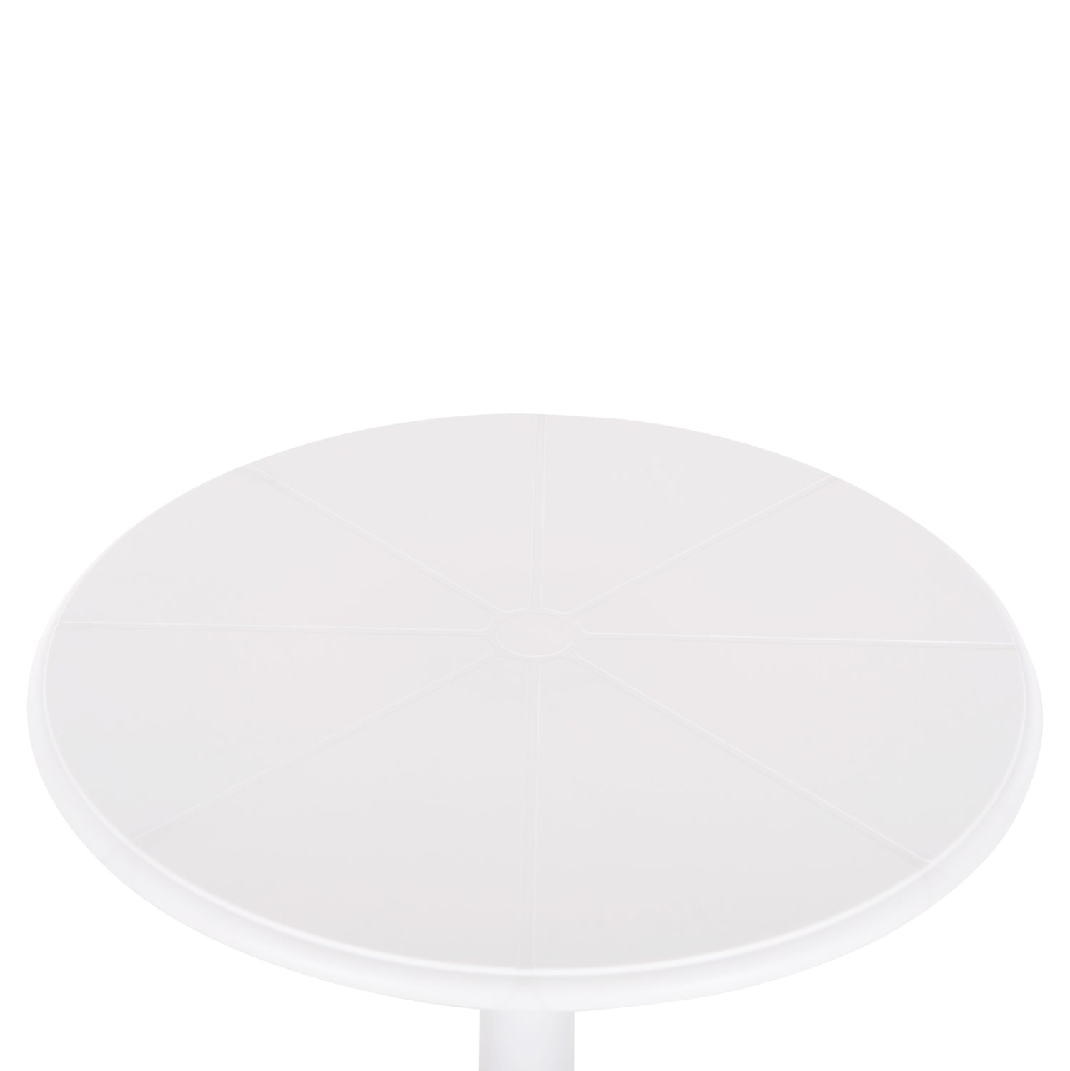 Το τραπέζι πολυπροπυλενίου TERRIN σε ΛΕΥΚΟ χρώμα είναι η ιδανική πρόταση για χρήση σε εξωτερικούς χώρους, είτε επαγγελματικούς (χώροι δεξιώσεων, εταιρείες catering, κλπ.) είτε για το σπίτι. Το τραπέζι είναι στρογγυλό, ενώ η στήριξη γίνεται με μια κολώνα στο κέντρο που καταλήγει σε 4 πόδια («νύχια»).