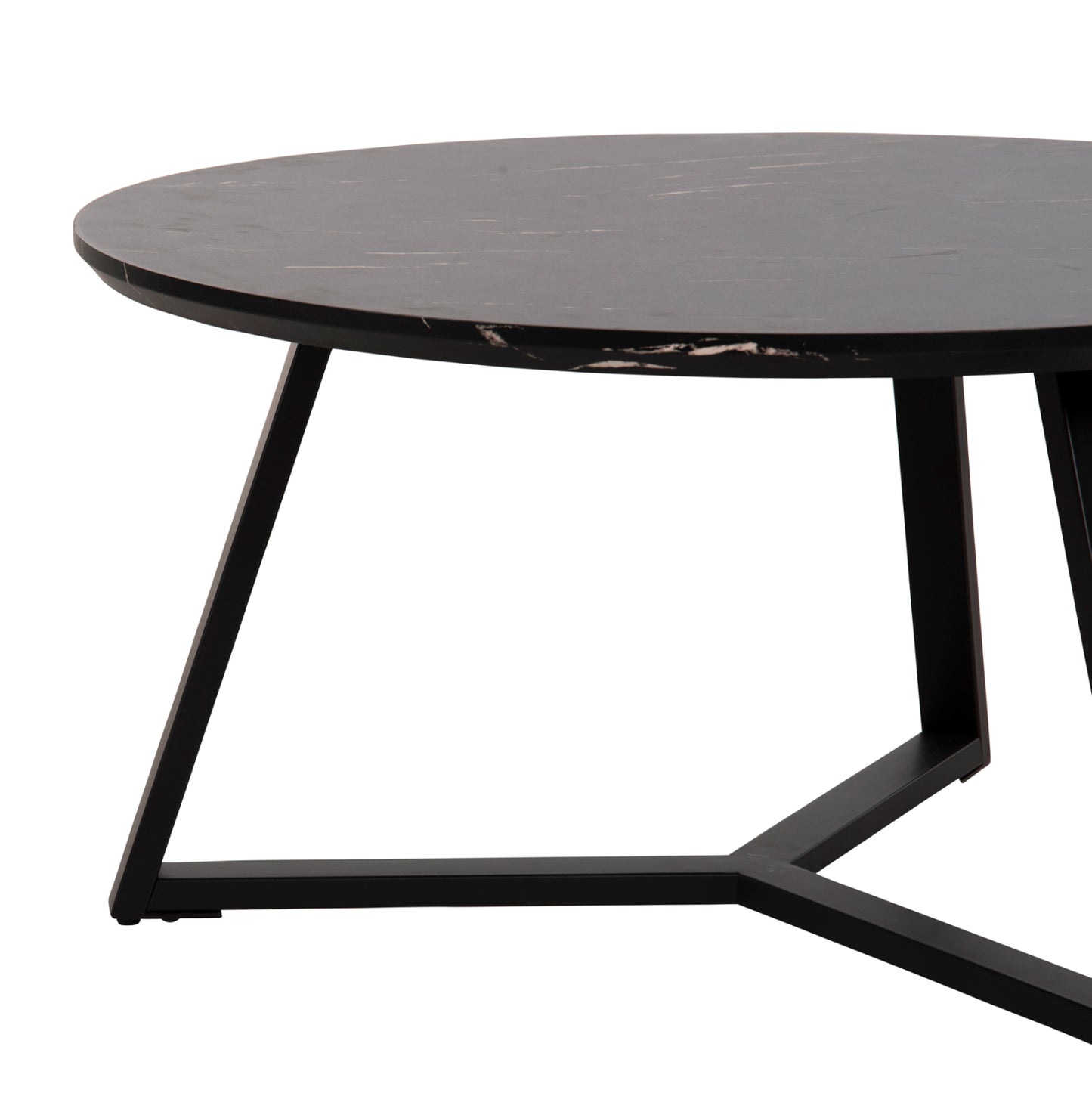 Το τραπεζάκι σαλονιού ΗΜ9586.01 είναι η καινούργια προσθήκη στην γκάμα μας και θα σας ενθουσιάσει με το στυλ και την πρακτικότητά του. Πρόκειται για ένα στρογγυλό τραπεζάκι με ιδιαίτερο χαρακτηριστικό ότι η επιφάνεια στηρίζεται σε μια μοντέρνα τρίποδη βάση. Η βάση είναι μεταλλική σε ΜΑΥΡΟ σαγρέ χρώμα, ενώ η φαλτσοκομμένη επιφάνεια είναι κατασκευασμένη από MDF σε χρώμα ΜΑΥΡΟΥ ΜΑΡΜΑΡΟΥ.