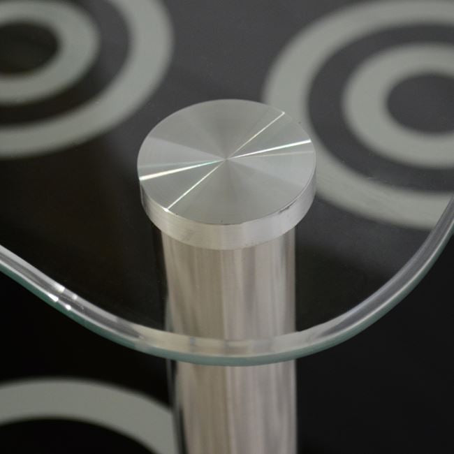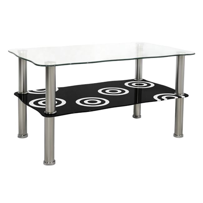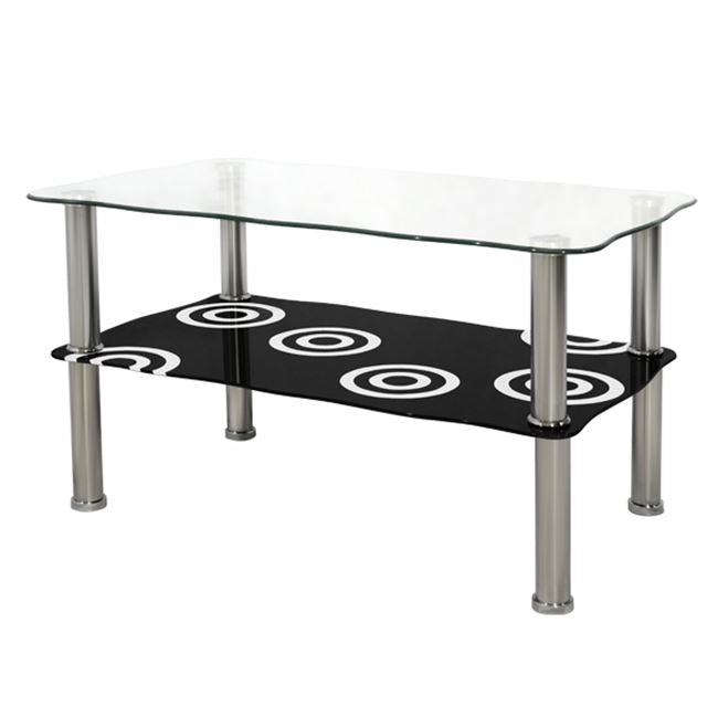 ΗΜ0087 ΤΡΑΠΕΖΙ ΣΑΛΟΝΙΟΥ-----Ανακαλύψτε το μοντέρνο τραπεζάκι σαλονιού GRABES. Διαθέτει 2 γυάλινες επιφάνειες και μεταλλικά χρωμιωμένα πόδια. Η επάνω επιφάνεια είναι διάφανη, ενώ η κάτω επιφάνεια είναι μαύρη με όμορφα κυκλικά σχέδια. Το γυαλί σε συνδυασμό με τα χρωμιωμένα πόδια προσδίδουν την αίσθηση της καθαρότητας και της απλότητας στον χώρο.