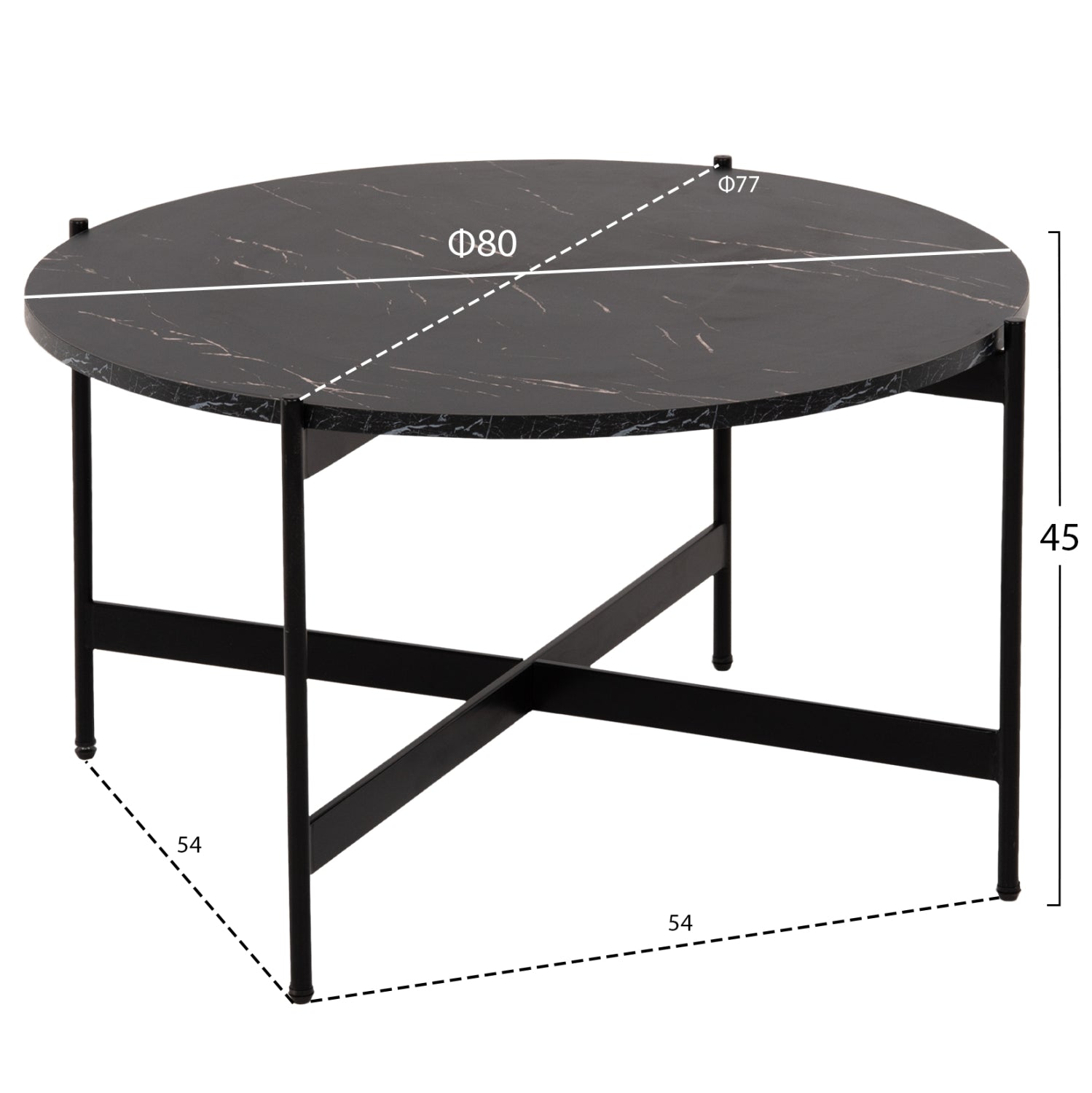 ΤΡΑΠΕΖΙ ΣΑΛΟΝΙΟΥ HM9588.01 MDF ΜΑΥΡΟ ΜΑΡΜΑΡΟ-ΜΑΥΡΗ ΜΕΤΑΛΛΙΚΗ ΒΑΣΗ Φ80x45Υεκ.