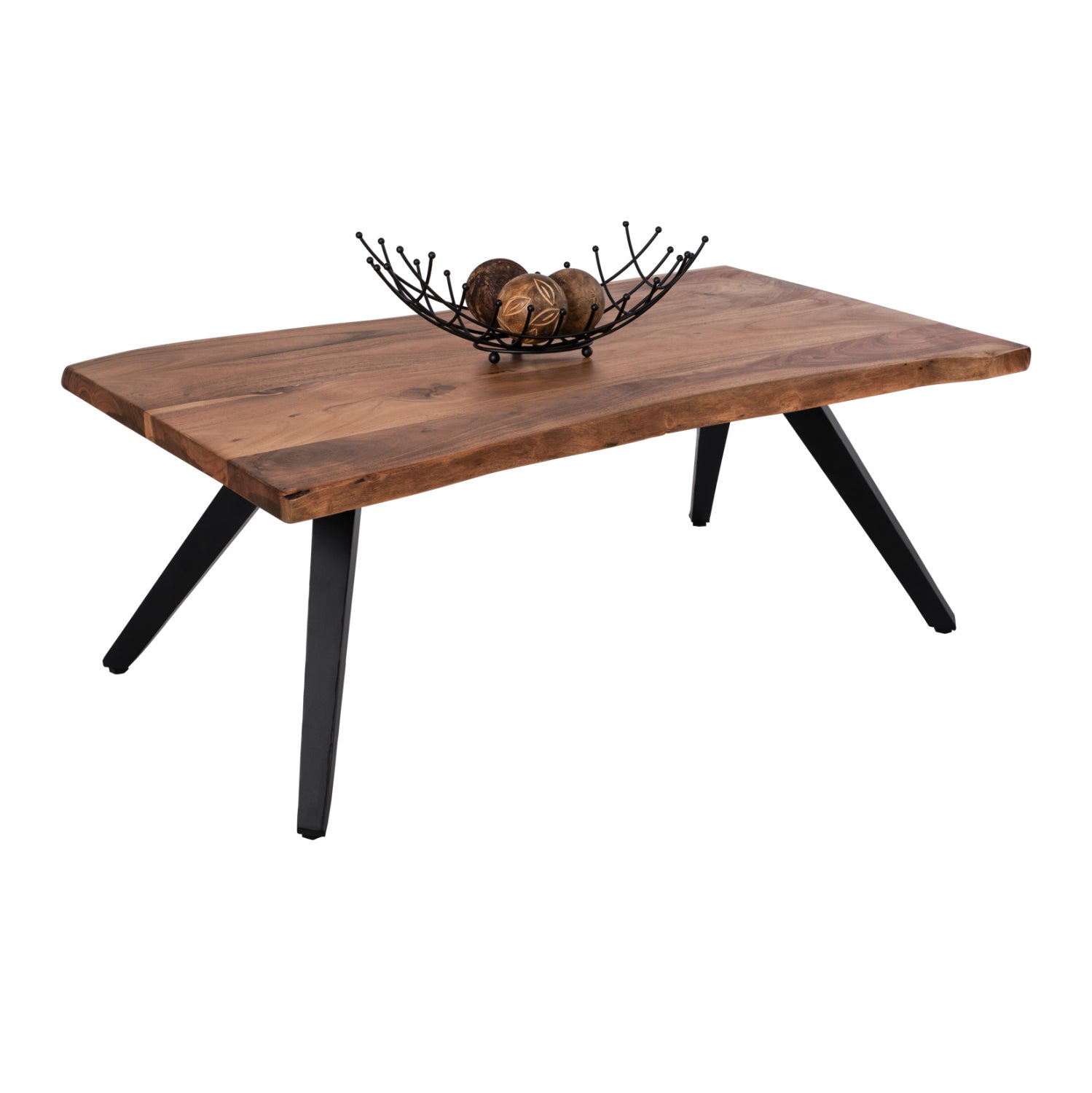 Ανακαλύψτε το μοναδικό χειροποίητο τραπέζι σαλονιού HM8365.11 με επιφάνεια από φυσικό μασίφ ξύλο ΑΚΑΚΙΑΣ. To σχήμα είναι ορθογώνιο και στηρίζεται σε 4 μαύρα μεταλλικά πόδια με τετράγωνο κόψιμο και σε σχήμα Λ στις 2 πλευρές του τραπεζιού. Το τραπέζι είναι πανέμορφο και λιτό σε φιλοσοφία, παράλληλα όμως φέρνει την φύση στο σαλόνι σας. Είναι γνωστό άλλωστε ότι η φύση, γενικά, λειτουργεί καταπραϋντικά στην ανθρώπινη ψυχολογία κι ένα τέτοιο τραπέζι θα αποτελέσει ένα «ζεστό» σημείο συγκέντρωσης στο σαλόνι σας.