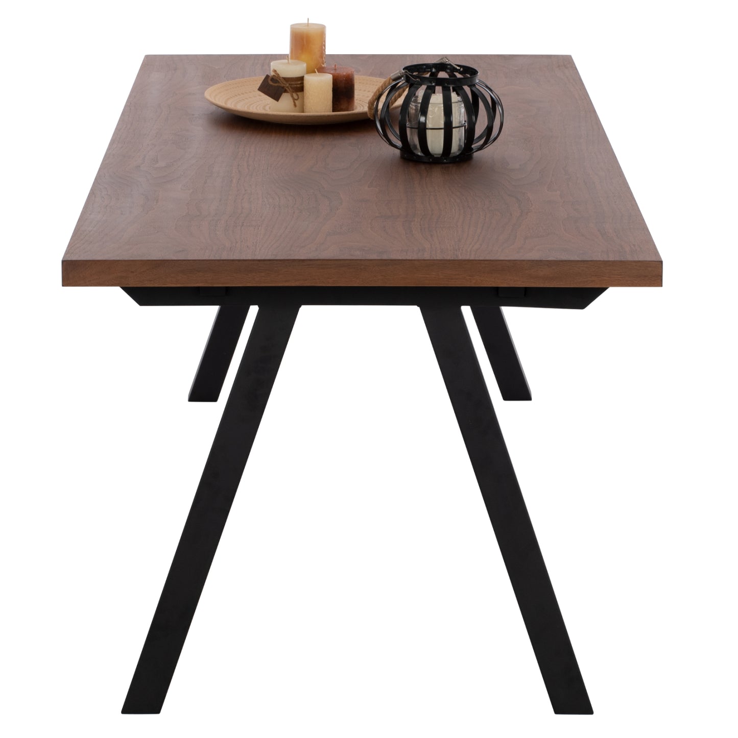 Το ΗΜ9305.02 είναι ένα μεγάλο ορθογώνιο τραπέζι για την τραπεζαρία, με επιφάνεια από MDF με καπλαμά καρυδιάς σε χρώμα ΣΚΟΥΡΟ ΚΑΡΥΔΙ σε στυλ ρουστίκ. Η επιφάνεια αυτή στηρίζεται σε έναν μαύρο μεταλλικό ορθογώνιο σκελετό\πλαίσιο με πόδια σε σχήμα ανοιχτού Λ. Πρόκειται για ένα επιβλητικό τραπέζι σε μεγάλη διάσταση και με όμορφη διχρωμία, με αποτέλεσμα να μπορεί να ταιριάξει αισθητικά σχεδόν σε κάθε ανάλογο χώρο.