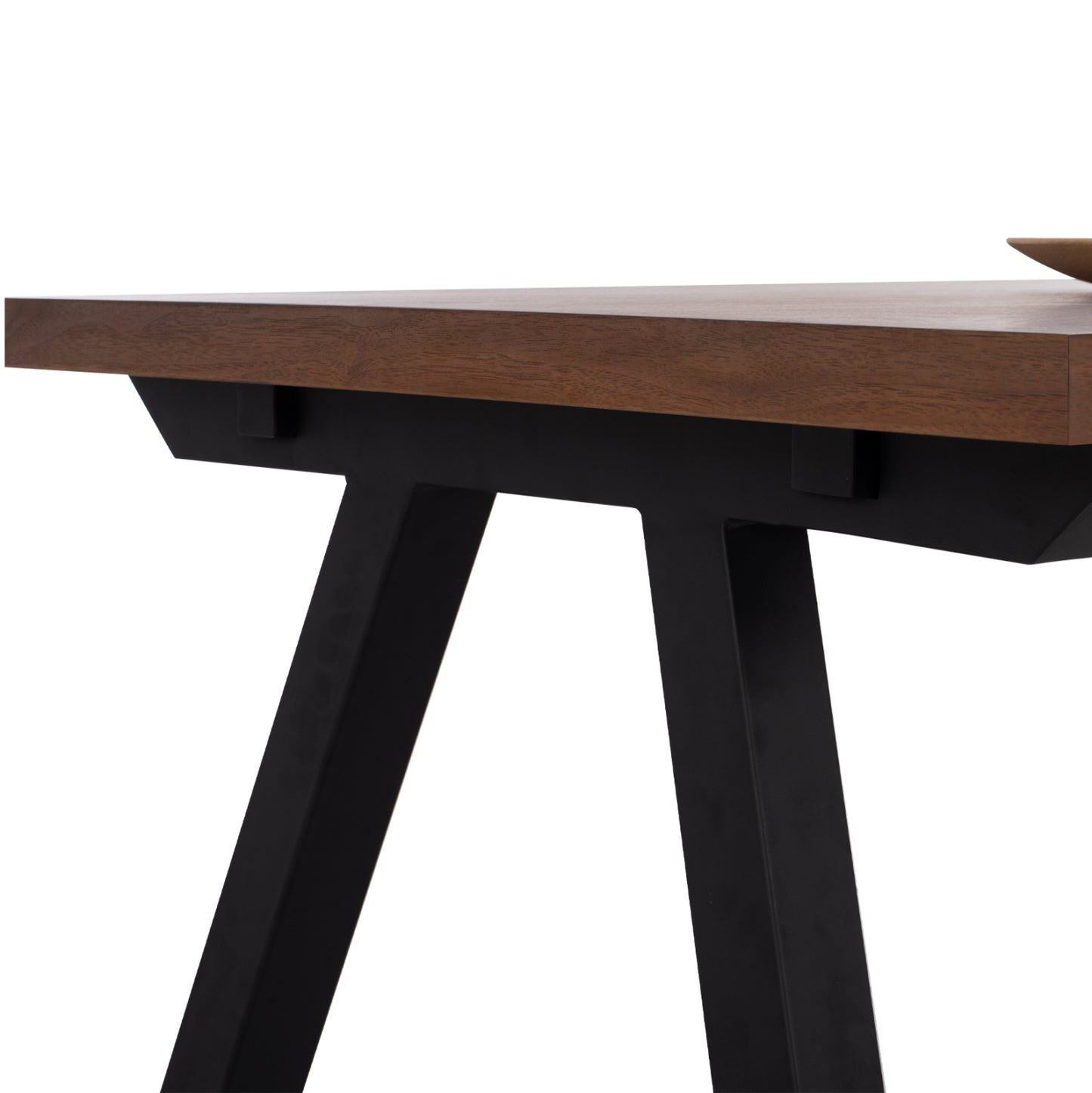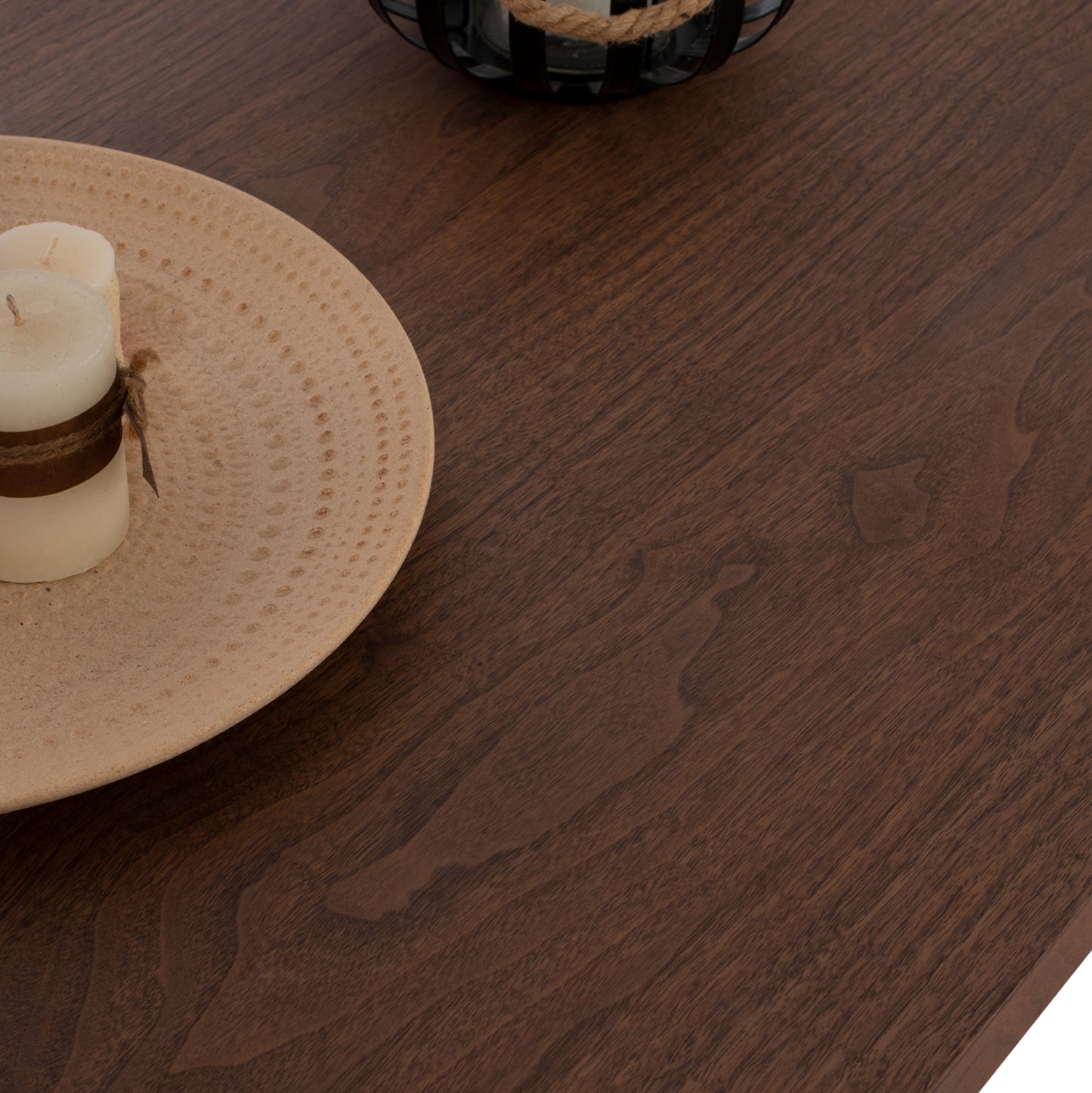 Η επιφάνεια του τραπεζιού είναι από MDF με καπλαμά καρυδιάς. Το MDF (Medium Density Fiber) είναι ένα σύγχρονο υλικό ευρείας κατανάλωσης το οποίο επιλέγεται πολύ συχνά κυρίως για τον χώρο της κουζίνας. Βασικά χαρακτηριστικά του είναι ότι απορροφά ελάχιστη υγρασία, παράγοντας σημαντικός για έναν χώρο όπως αυτός της κουζίνας, διαθέτει ομοιογένεια στην μάζα του, ικανοποιητικές μηχανικές ιδιότητες, εξαιρετική ομαλότητα και πολλές δυνατότητες επεξεργασίας.