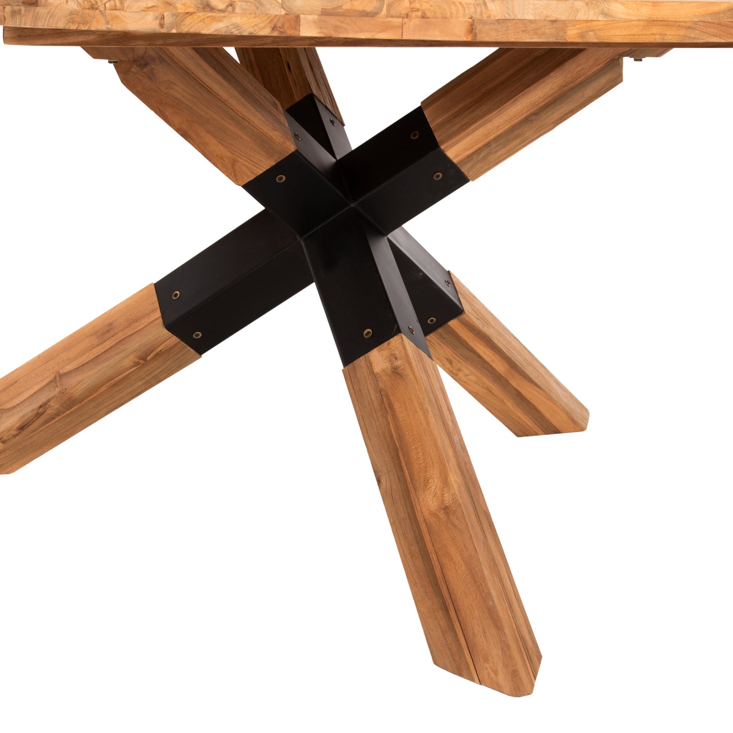 HM9559---Στρογγυλό τραπέζι, κατασκευασμένο εξολοκλήρου από μασίφ ξύλα ΤΕΑΚ στο φυσικό τους χρώμα. Στηρίζεται σε μια χιαστί σκούρα γκρι μεταλλική διάταξη ποδιών, σε συνδυασμό με ξύλο. Ένα τραπέζι που θα ενθουσιάσει τους πάντες με το ικανοποιητικό μέγεθός του και την αντοχή του. Εσείς το μόνο που έχετε να κάνετε είναι να βρείτε τις καρέκλες που θα ταιριάξουν με αυτό το υπέροχο τραπέζι! Τα τραπέζια ροτόντες είναι ιδιαιτέρως πρακτικά και όμορφα γιατί δεν έχουν κορυφές και «αρχηγούς», ούτε και γωνίες ή πόδια που, πολλές φορές, δημιουργούν άβολες καταστάσεις.