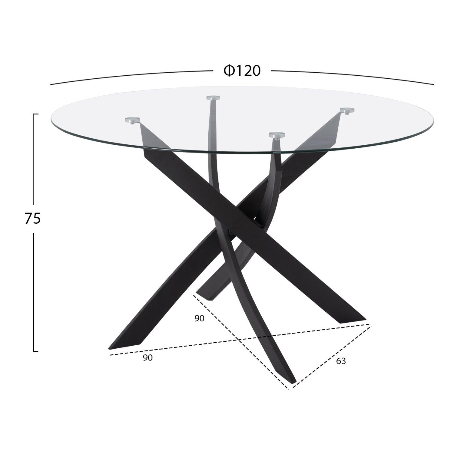 ΤΡΑΠΕΖΙ ΤΡΑΠΕΖΑΡΙΑΣ ΣΤΡΟΓΓΥΛΟ JADA ΜΕΤΑΛΛΙΚΟ ΜΑΥΡΟ ΜΕ ΓΥΑΛΙ HM8733.01 Φ120X75Y εκ.