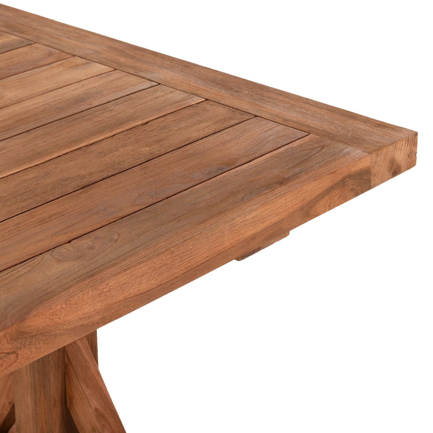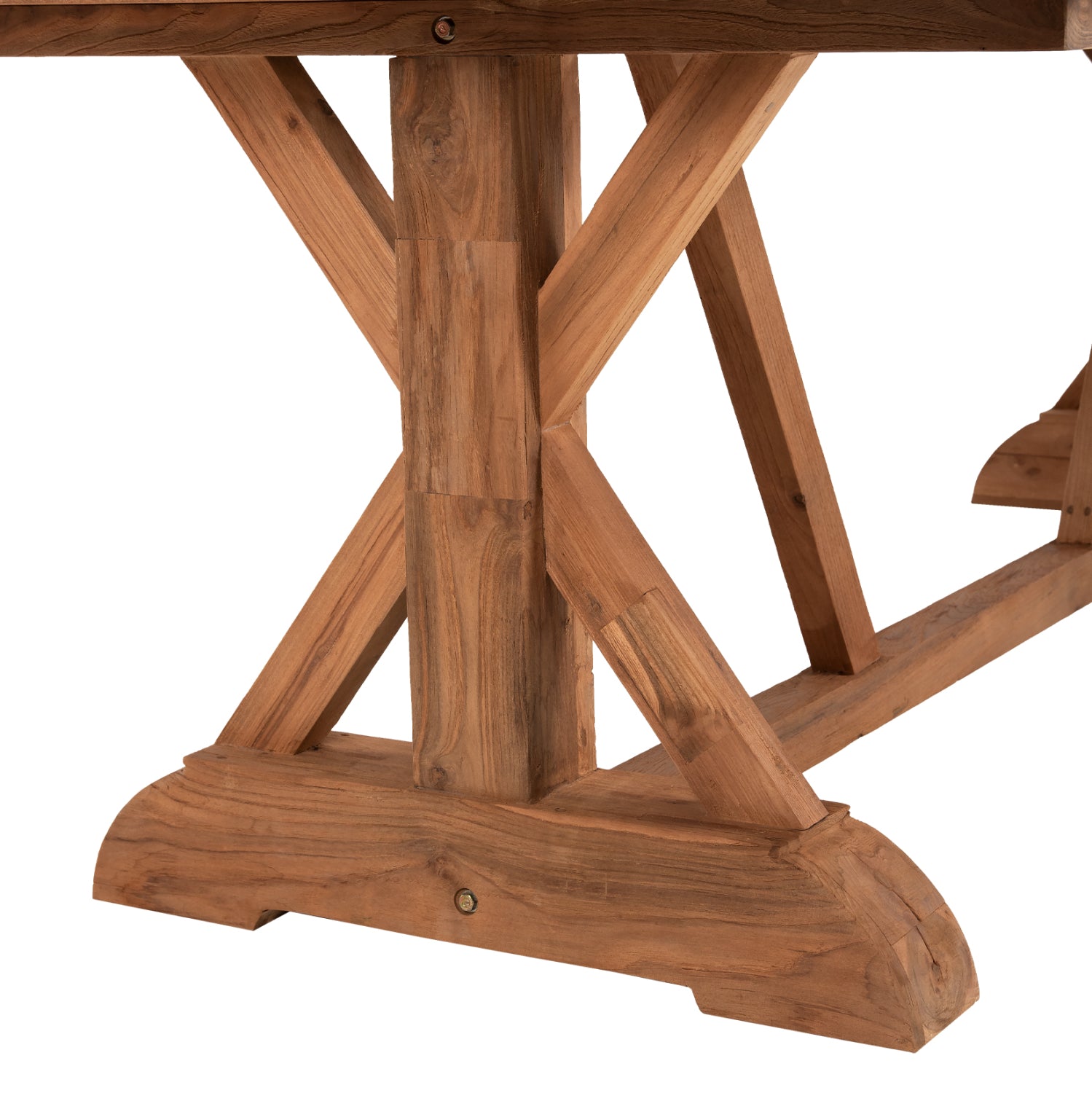 HM9563---Μεγάλο τραπέζι ορθογώνιο, κατασκευασμένο εξολοκλήρου από μασίφ ξύλα ΤΕΑΚ στο φυσικό τους χρώμα. Τα πόδια είναι ιδιαίτερα στιβαρά και είναι σε χιαστί διάταξη. Ένα τραπέζι που θα αναβαθμίσει τον εξωτερικό σας χώρο και θα ενθουσιάσει τους πάντες με το ιδιαίτερα μεγάλο μέγεθός του και την αντοχή του. Μαζί με τα αντίστοιχα παγκάκια, σας δίνει την δυνατότητα να δημιουργήσετε ένα πανέμορφο σετ για να απολαμβάνετε τον χρόνο σας με την οικογένεια ή την παρέα σας.