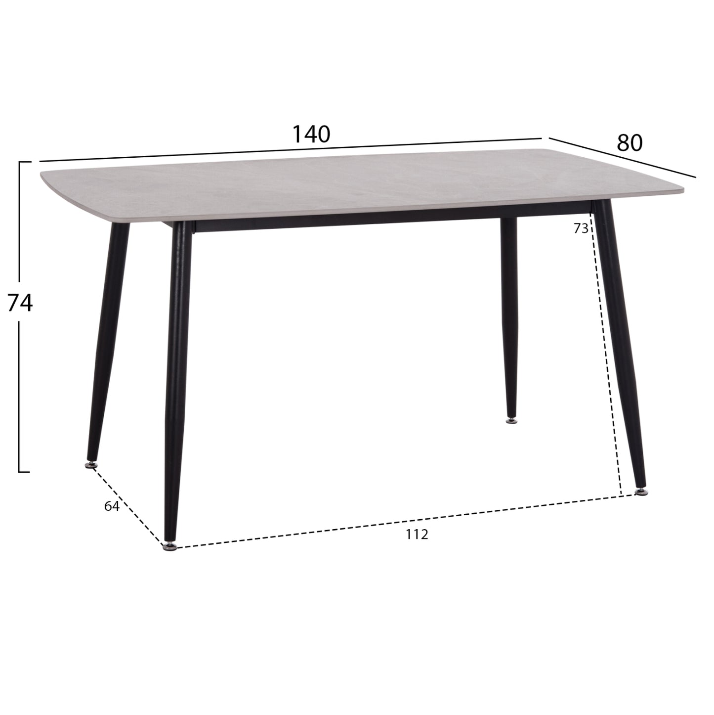 ΤΡΑΠΕΖΙ RAVEN HM18149.13 ΚΕΡΑΜΙΚΟ TOP ΓΚΡΙ ΜΑΡΜΑΡΟ-ΜΑΥΡΟ ΜΕΤΑΛΛΟ 140x80x74Υεκ.