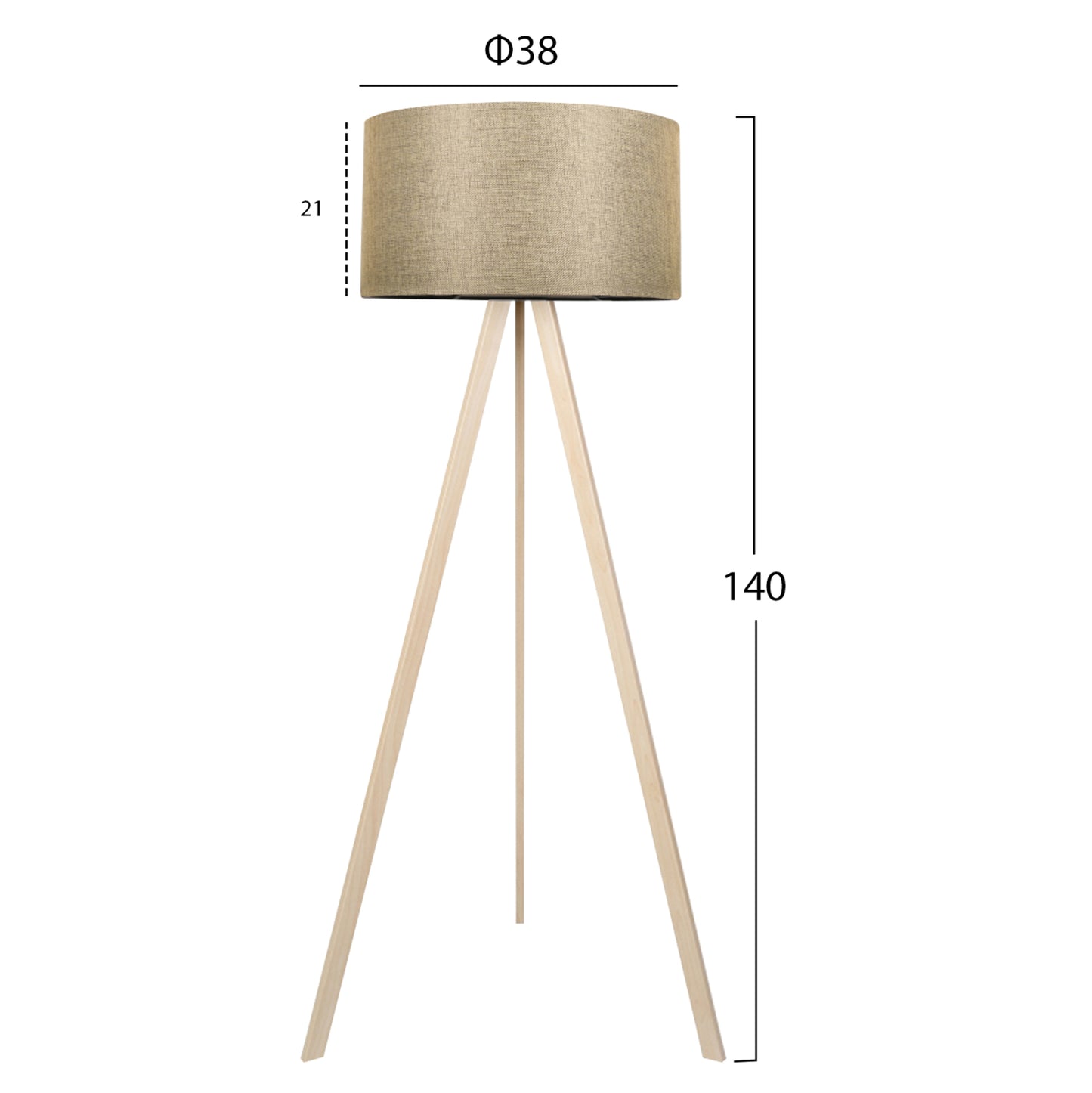 Φωτιστικό δαπέδου με τρίποδο από 100% MDF σε φυσικό χρώμα. Το κυλινδρικό «καπέλο» του φωτιστικού είναι σε χρυσοκαφετί απόχρωση. Ένα όμορφο φωτιστικό δαπέδου που θα δημιουργήσει την ατμόσφαιρα που πάντα φανταζόσασταν για τον χώρο σας, έτσι ώστε να φτιάξετε την δική σας γωνιά χαλάρωσης ή ακόμα και διακόσμησης. Διότι το φως, σημαίνει κάτι περισσότερο από ένα φωτιστικό. Σημαίνει διακόσμηση, ατμόσφαιρα, τέχνη, μεράκι, και φυσικά επιστήμη.